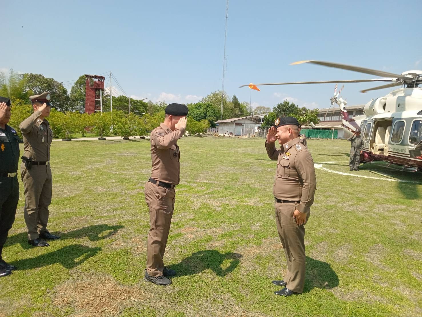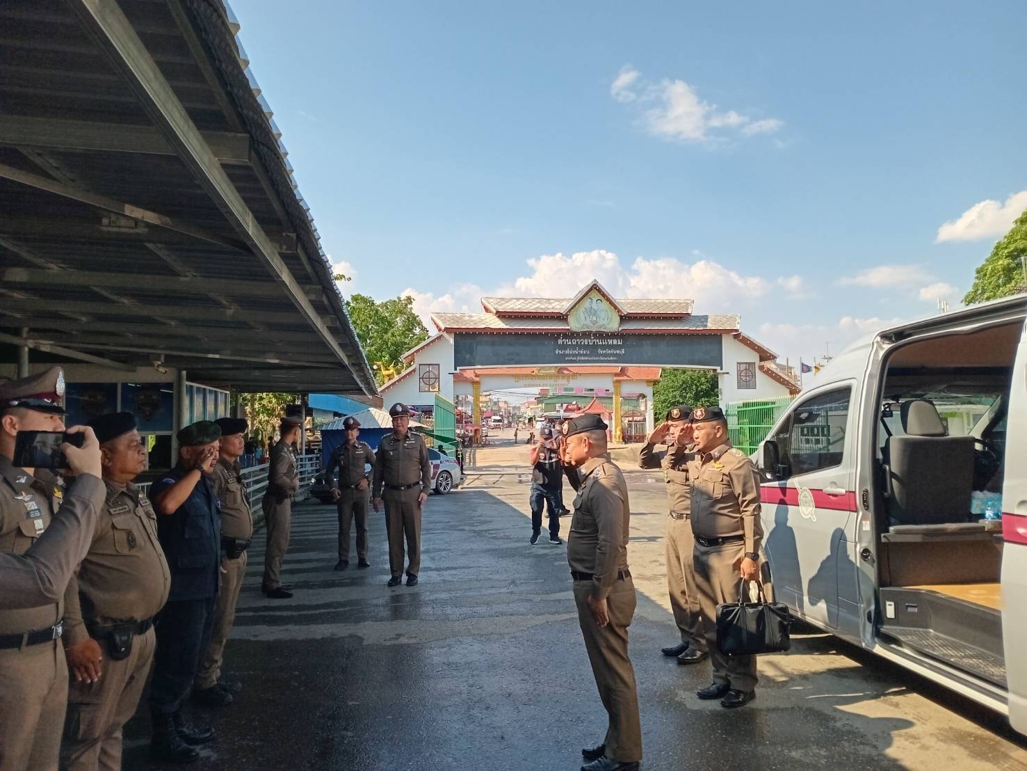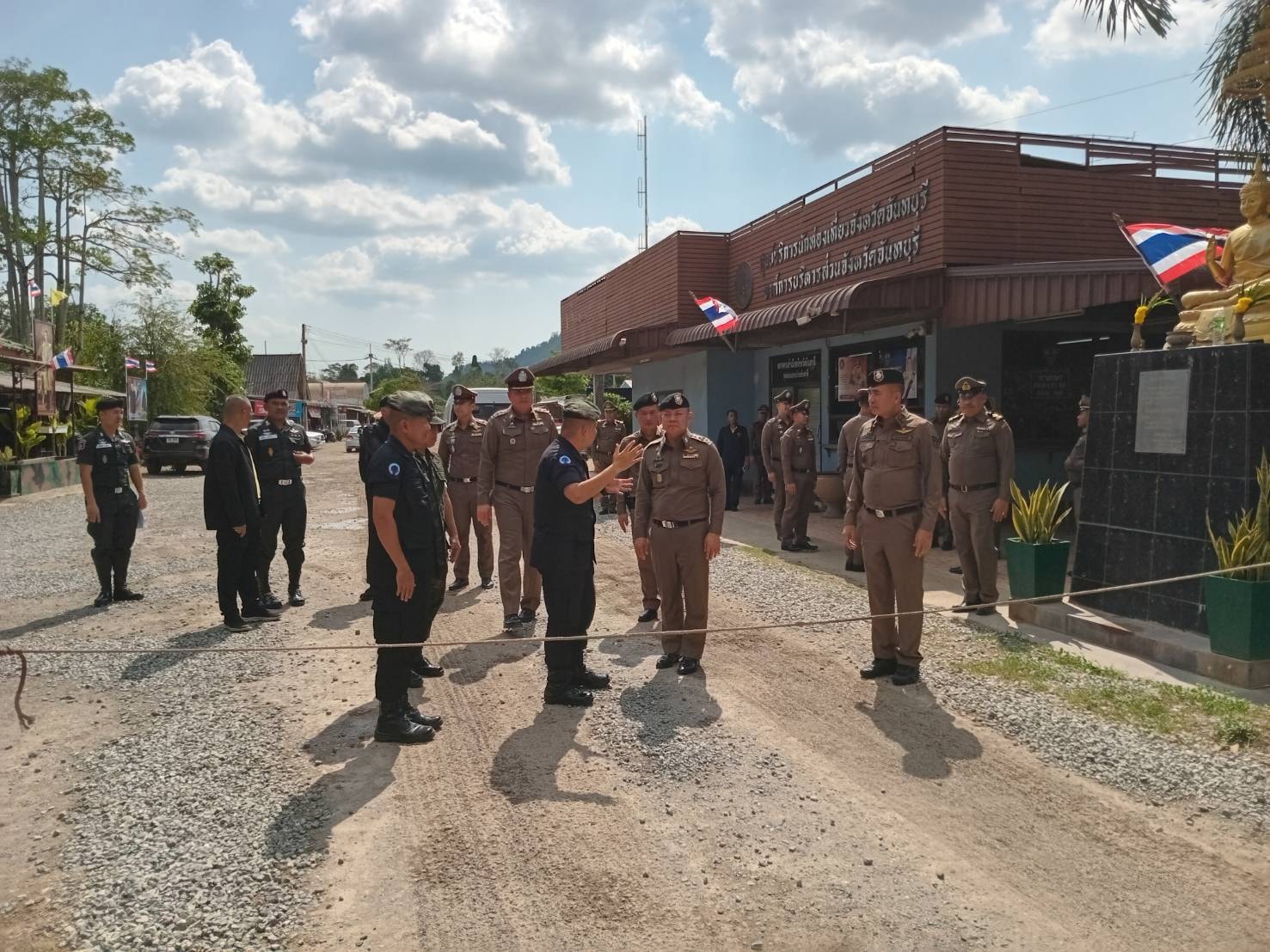 วันที่ 3 เม.ย.67 เวลา 14.30 น. พล.ต.ต.ผดุงศักดิ์ รักษาสุข ผบก.ภ.จว.จันทบุรี ร่วมให้การต้อนรับ พล.ต.อ.ธนา ชูวงศ์ รอง ผบ.ตร. รับผิดชอบกำกับการบริหารราชการ รวมทั้งสั่งและปฏิบัติราชการแทน ผบ.ตร. ในงานศูนย์ปราบปรามคนร้ายข้ามชาติและเข้าเมืองโดยผิดกฏหมาย (ศปชก.ตร.) ได้มาตรวจเยี่ยมงานการปราบปรามคนร้ายข้ามชาติและเข้าเมืองโดยผิดกฏหมาย โดยมีผู้ร่วมรับการตรวจเยี่ยมประกอบด้วย พล.ต.ท.อิทธิพล อัจฉริยะประดิษฐ์ ผู้ช่วย ผบ.ตร., พล.ต.ต.ฉัตรชัย สุรเชษฐพงษ์ รอง ผบช.ภ.2, พล.ต.ต.ผดุงศักดิ์ รักษาสุข ผบก.ภ.จว.จันทบุรี, พ.ต.อ.วีรยศ การุณยธร รอง ผบก.ตม.2 รรท.ผกก.ตม.จว.จันทบุรี , พ.ต.อ.กมล โอศิริ ผกก.สภ.สะตอน, พ.ต.อ.พรชัย แช่มช้อย ผกก.ตชด.11 , ณ จุดผ่อนปรนบ้านซับตารี , ด่านถาวรบ้านแหลม , จุดผ่านแดนถาวรบ้านผักกาด อ.สอยดาว จ.จันทบุรี