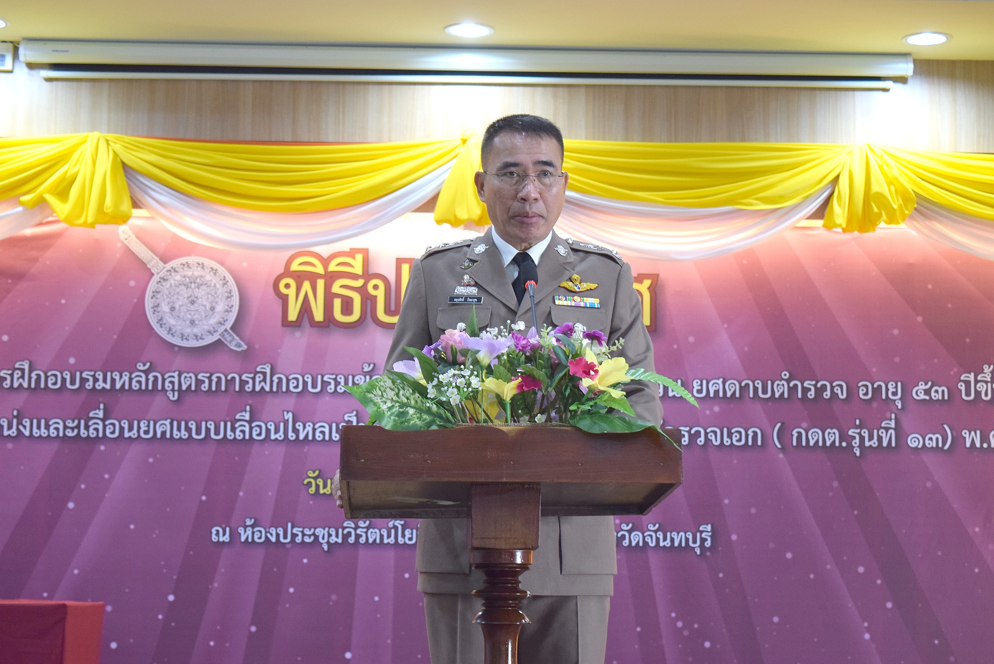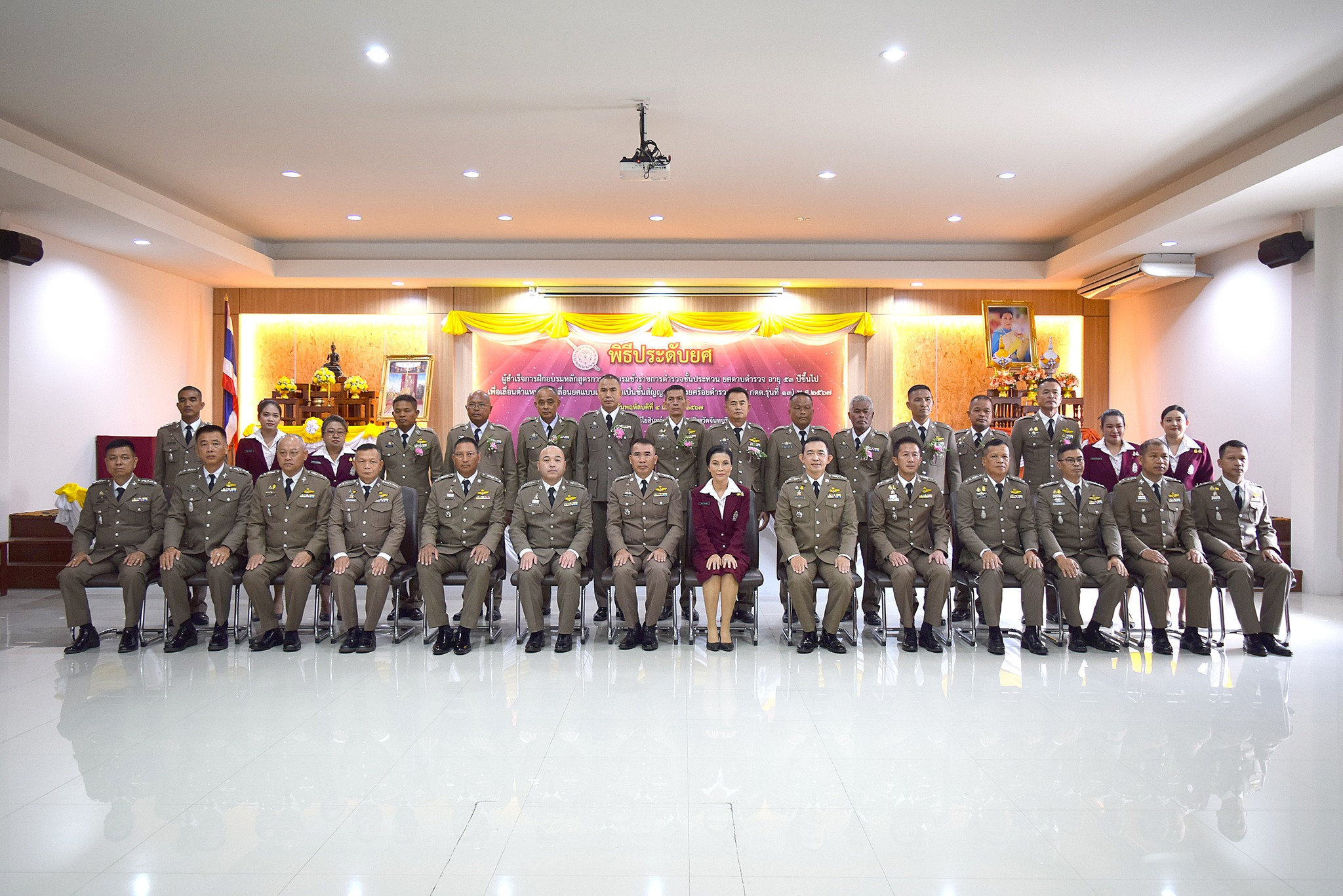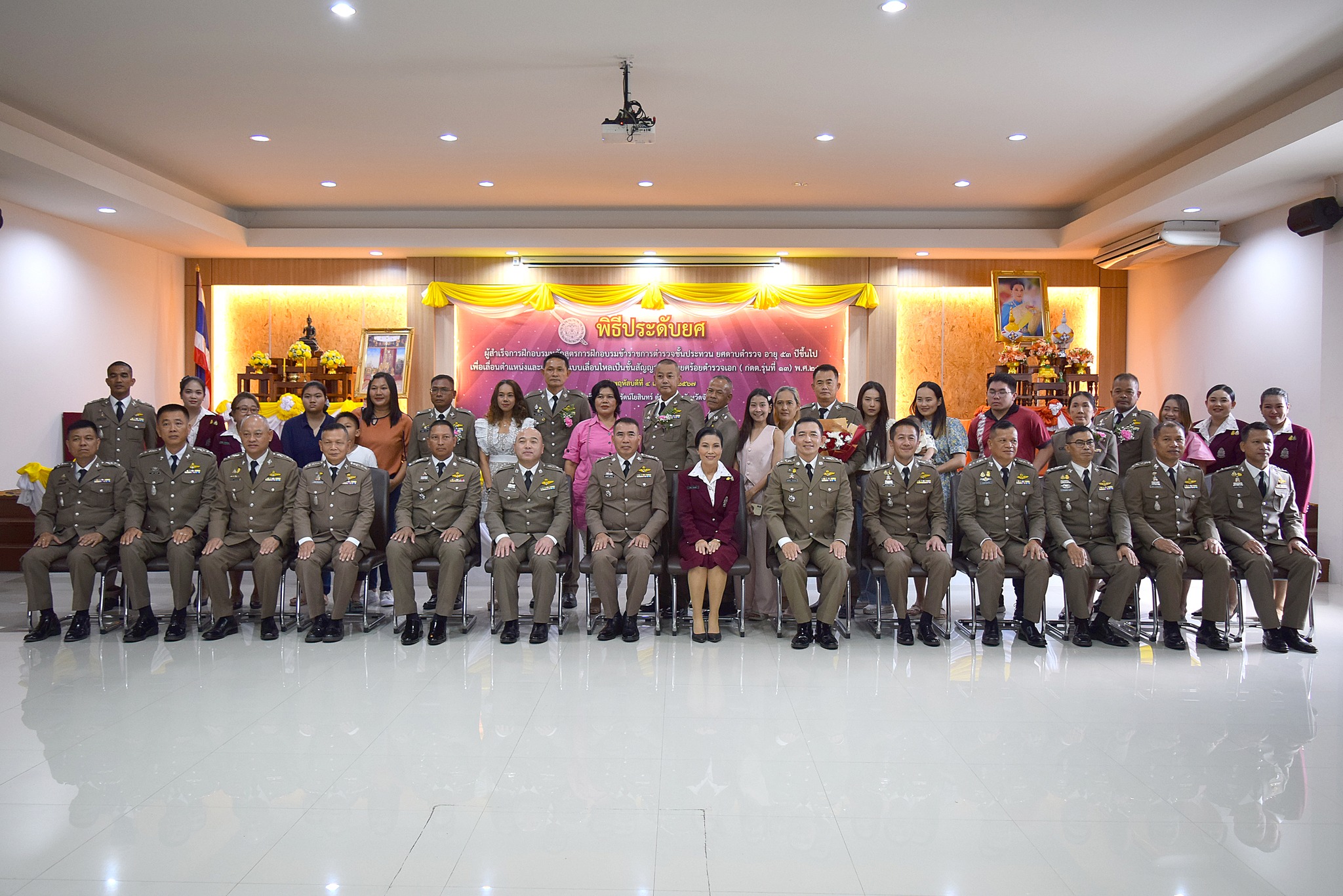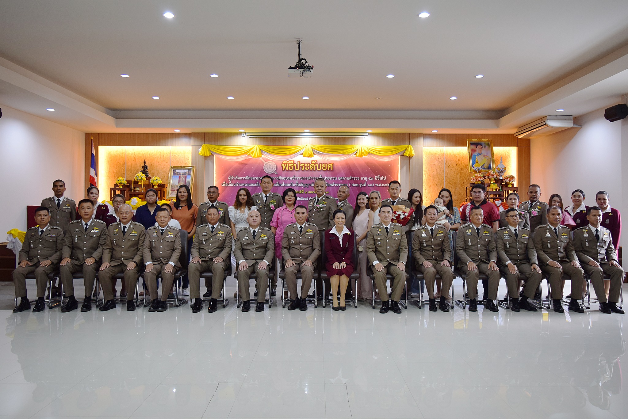 4 เม.ย.67 เวลา 09.00 น. พล.ต.ต.ผดุงศักดิ์ รักษาสุข ผบก.ภ.จว.จันทบุรี เป็นประธานพิธีประดับยศ ผู้สำเร็จการฝึกอบรมหลักสูตรการฝึกอบรมข้าราชการตำรวจชั้นประทวน ยศดาบตำรวจอายุ 53 ปี ขึ้นไป เพื่อเลื่อนตำแหน่งและเลื่อนยศแบบเลื่อนไหลเป็นชั้นสัญญาบัตรถึงยศร้อยตำรวจเอก ( กดต.รุ่นที่ 13 ) พ.ศ.2567 โดยมี รอง ผบก.ภ.จว.จันทบุรี, หน.สภ.ในสังกัด ภ.จว.จันทบุรี, คณะแม่บ้านตำรวจ ภ.จว.จันทบุรี และครอบครัวของผู้เข้ารับการประดับยศ เข้าร่วมพิธีนี้ด้วย ณ ห้องประชุมวิรัตน์โยสินทร์ ภ.จว.จันทบุรี