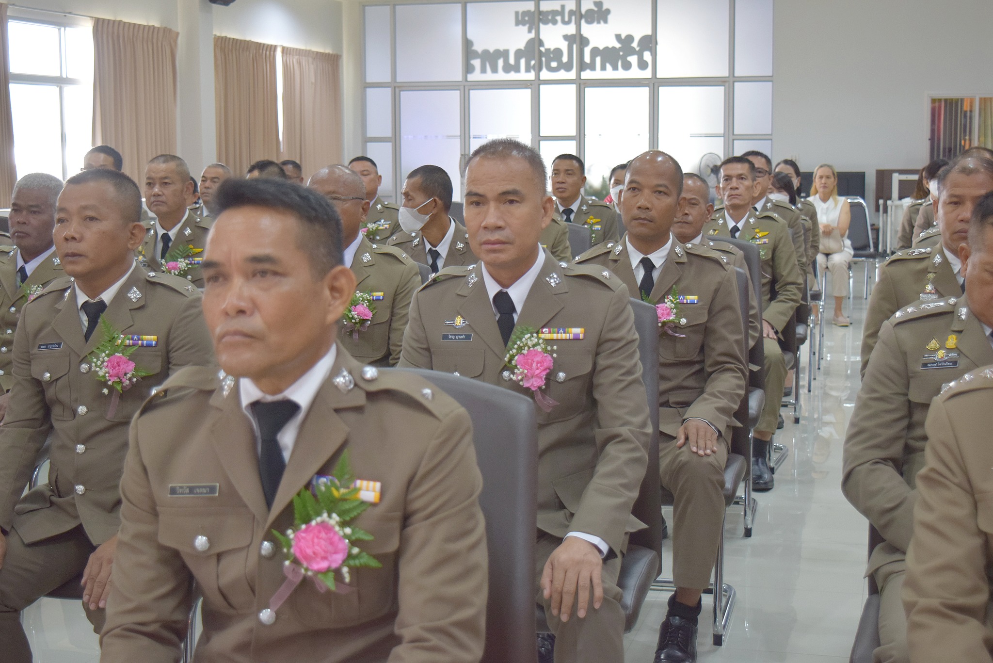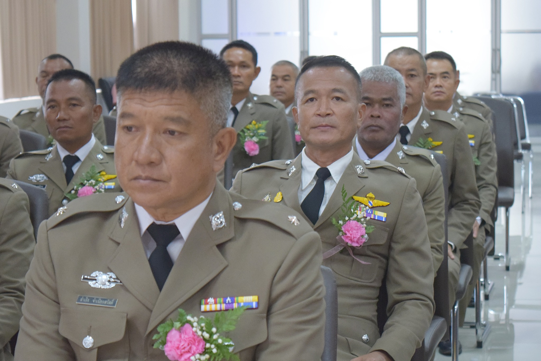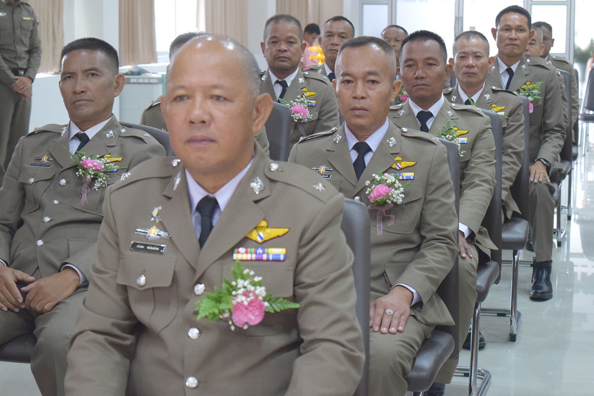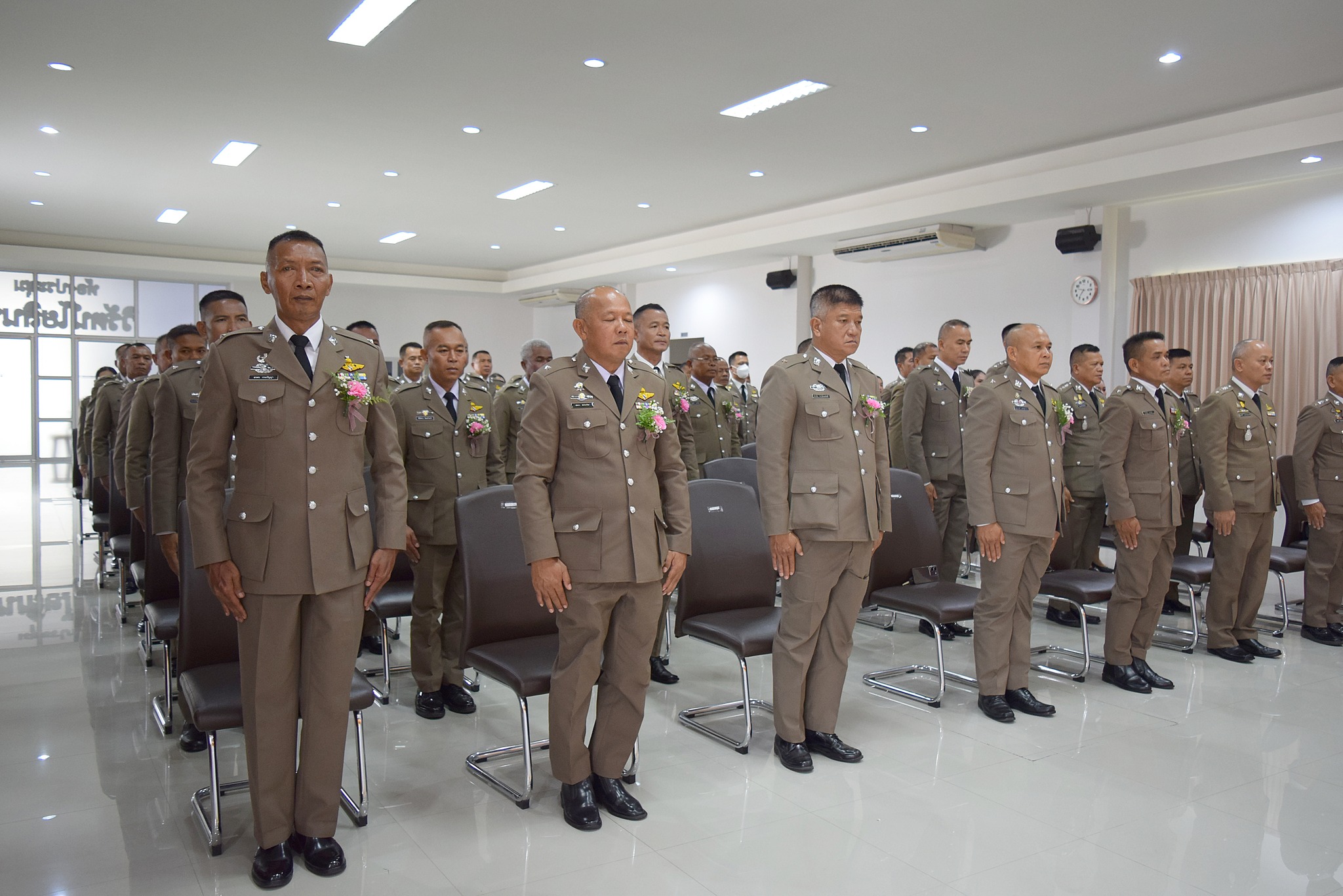 4 เม.ย.67 เวลา 09.00 น. พล.ต.ต.ผดุงศักดิ์ รักษาสุข ผบก.ภ.จว.จันทบุรี เป็นประธานพิธีประดับยศ ผู้สำเร็จการฝึกอบรมหลักสูตรการฝึกอบรมข้าราชการตำรวจชั้นประทวน ยศดาบตำรวจอายุ 53 ปี ขึ้นไป เพื่อเลื่อนตำแหน่งและเลื่อนยศแบบเลื่อนไหลเป็นชั้นสัญญาบัตรถึงยศร้อยตำรวจเอก ( กดต.รุ่นที่ 13 ) พ.ศ.2567 โดยมี รอง ผบก.ภ.จว.จันทบุรี, หน.สภ.ในสังกัด ภ.จว.จันทบุรี, คณะแม่บ้านตำรวจ ภ.จว.จันทบุรี และครอบครัวของผู้เข้ารับการประดับยศ เข้าร่วมพิธีนี้ด้วย ณ ห้องประชุมวิรัตน์โยสินทร์ ภ.จว.จันทบุรี