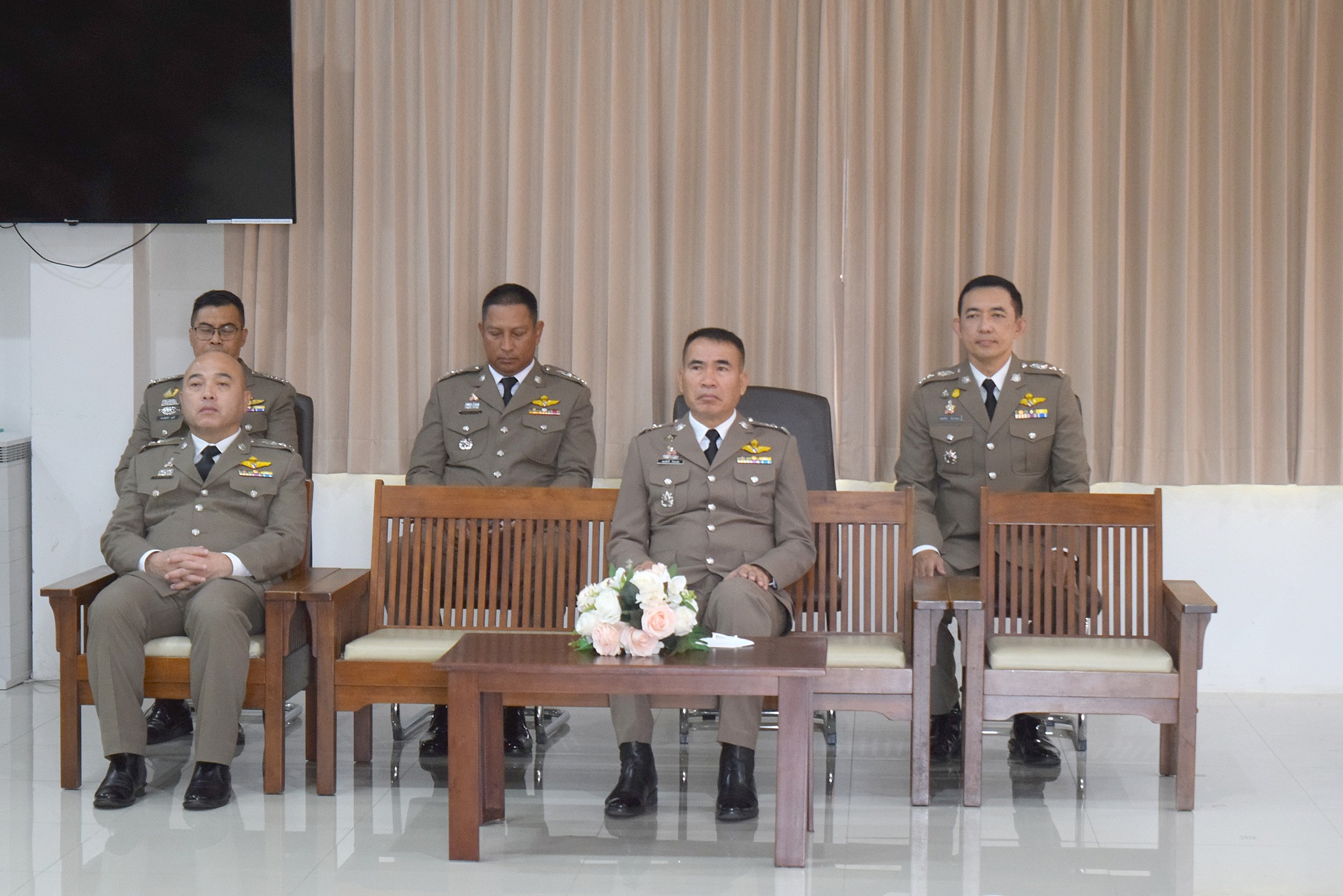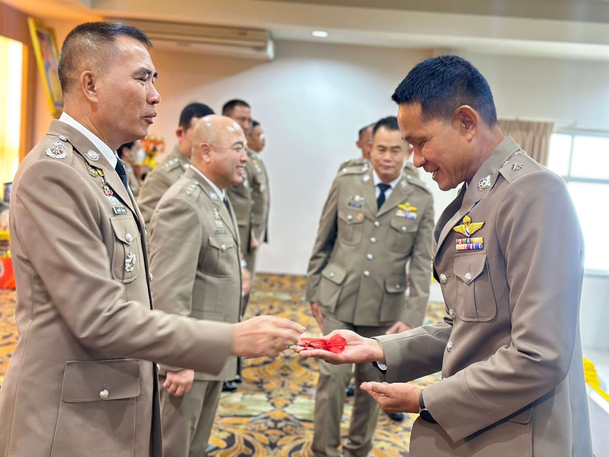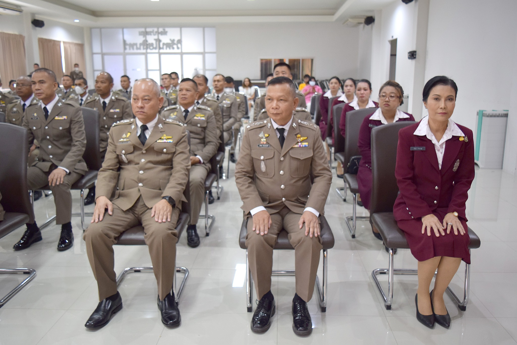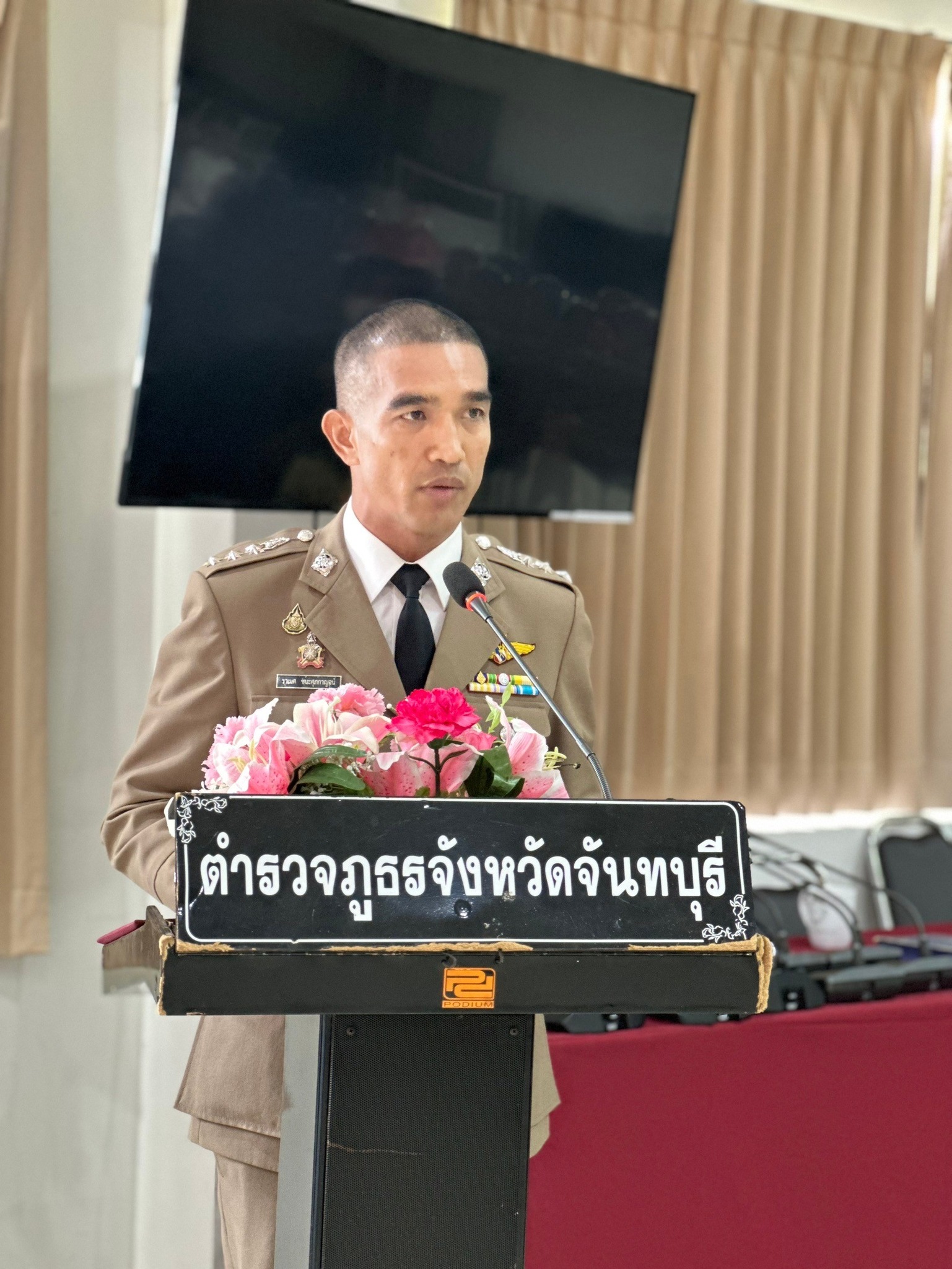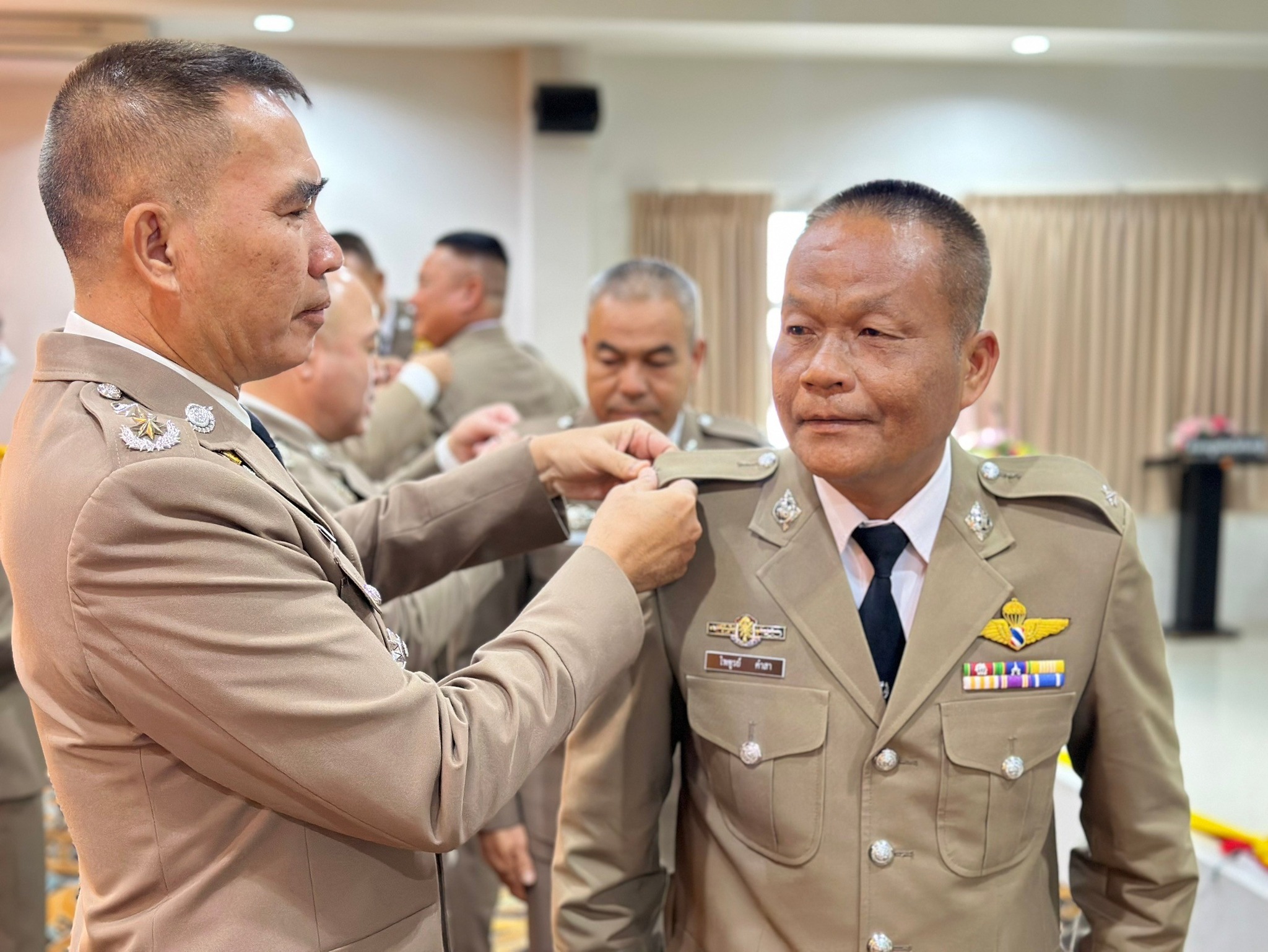 4 เม.ย.67 เวลา 09.00 น. พล.ต.ต.ผดุงศักดิ์ รักษาสุข ผบก.ภ.จว.จันทบุรี เป็นประธานพิธีประดับยศ ผู้สำเร็จการฝึกอบรมหลักสูตรการฝึกอบรมข้าราชการตำรวจชั้นประทวน ยศดาบตำรวจอายุ 53 ปี ขึ้นไป เพื่อเลื่อนตำแหน่งและเลื่อนยศแบบเลื่อนไหลเป็นชั้นสัญญาบัตรถึงยศร้อยตำรวจเอก ( กดต.รุ่นที่ 13 ) พ.ศ.2567 โดยมี รอง ผบก.ภ.จว.จันทบุรี, หน.สภ.ในสังกัด ภ.จว.จันทบุรี, คณะแม่บ้านตำรวจ ภ.จว.จันทบุรี และครอบครัวของผู้เข้ารับการประดับยศ เข้าร่วมพิธีนี้ด้วย ณ ห้องประชุมวิรัตน์โยสินทร์ ภ.จว.จันทบุรี