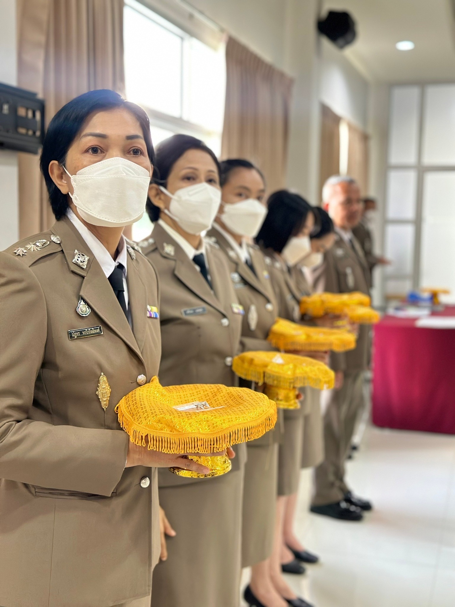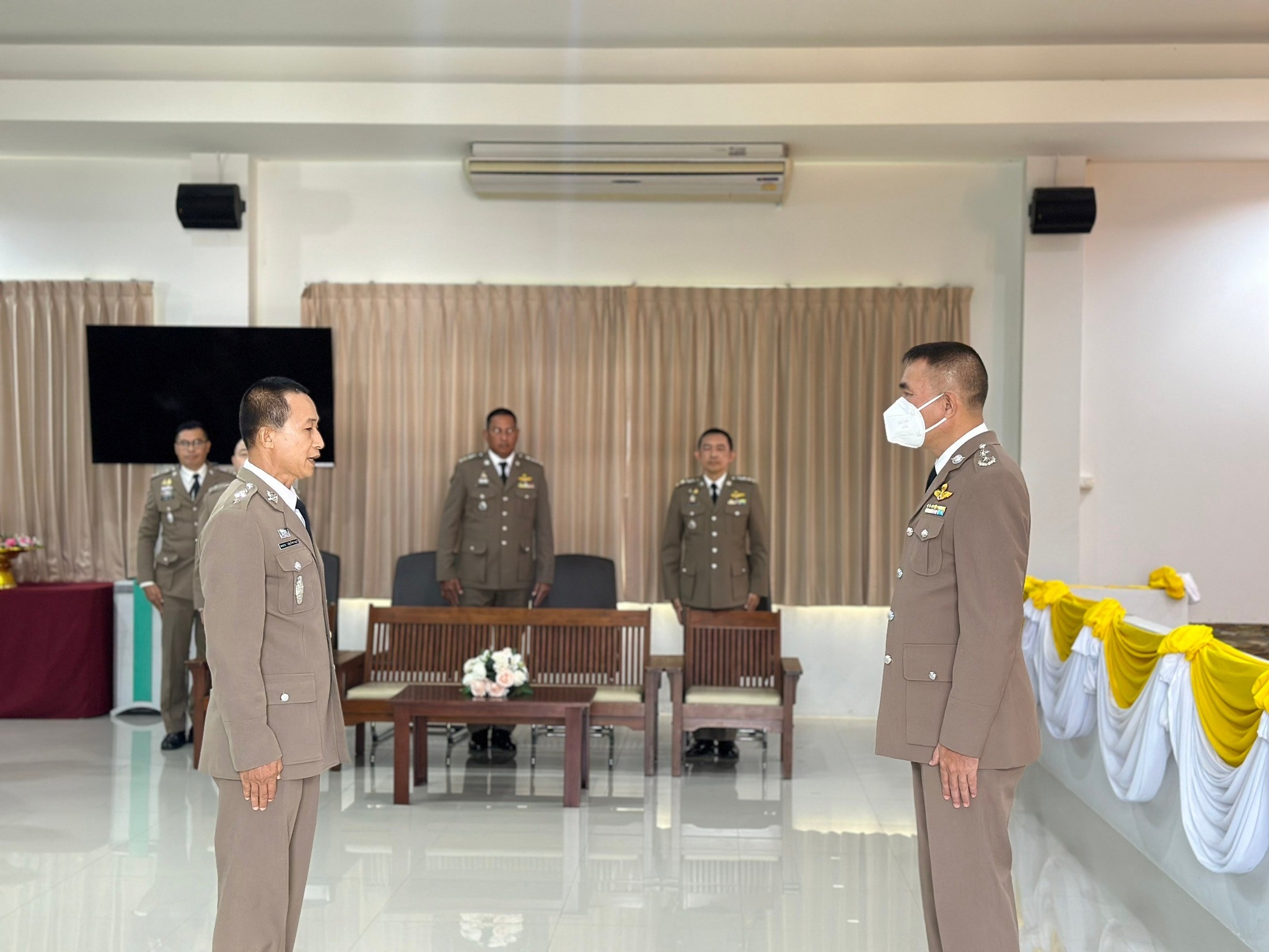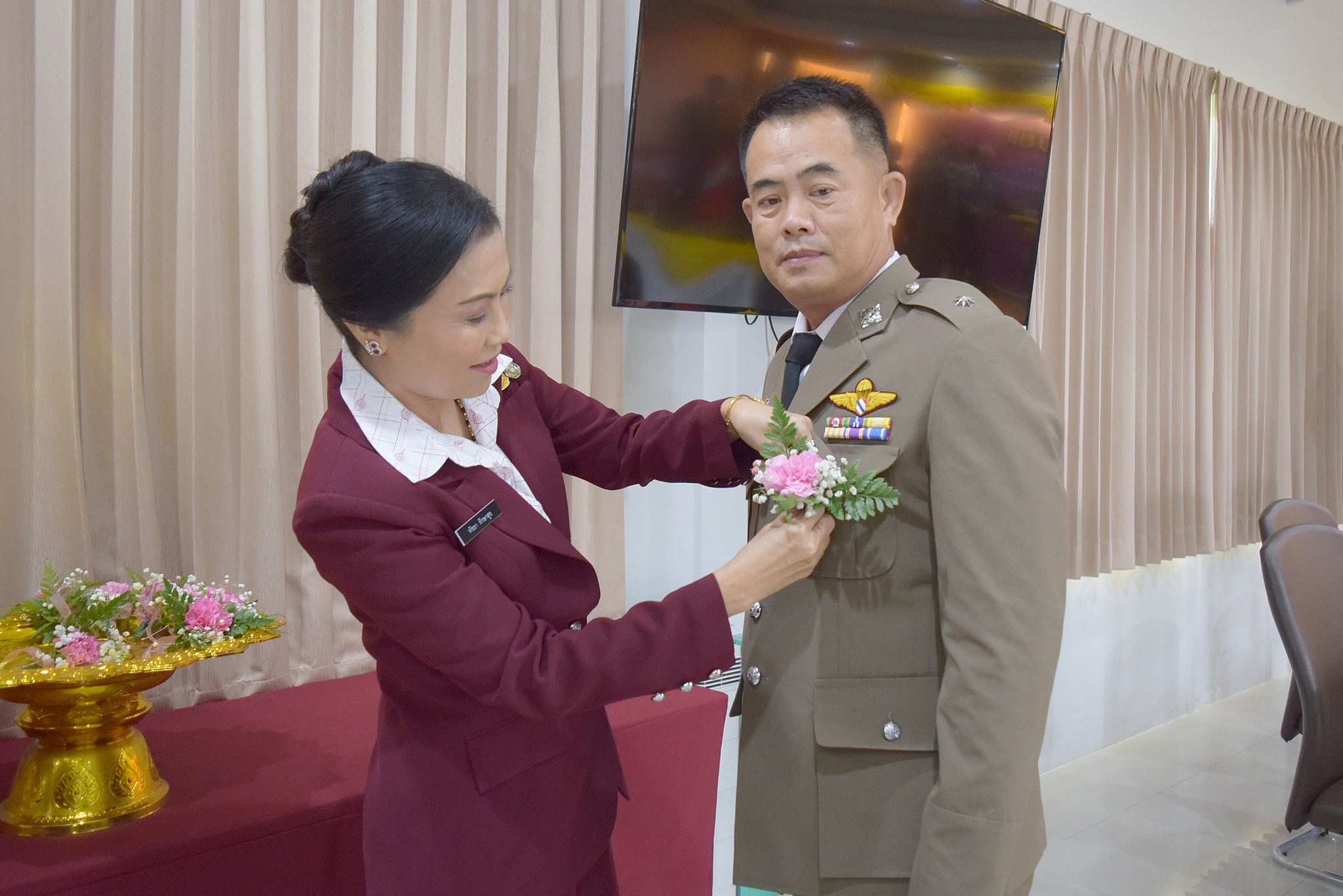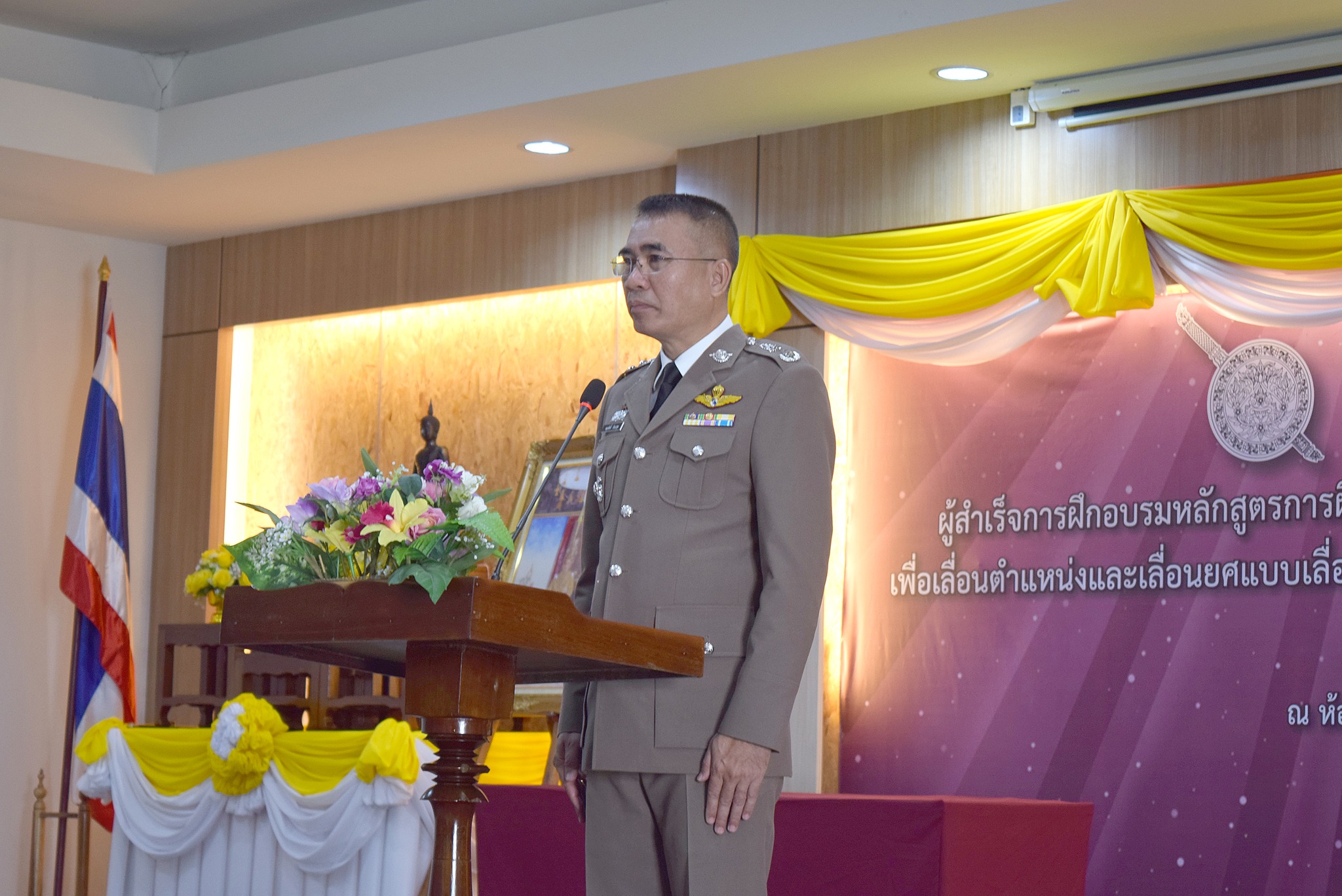 4 เม.ย.67 เวลา 09.00 น. พล.ต.ต.ผดุงศักดิ์ รักษาสุข ผบก.ภ.จว.จันทบุรี เป็นประธานพิธีประดับยศ ผู้สำเร็จการฝึกอบรมหลักสูตรการฝึกอบรมข้าราชการตำรวจชั้นประทวน ยศดาบตำรวจอายุ 53 ปี ขึ้นไป เพื่อเลื่อนตำแหน่งและเลื่อนยศแบบเลื่อนไหลเป็นชั้นสัญญาบัตรถึงยศร้อยตำรวจเอก ( กดต.รุ่นที่ 13 ) พ.ศ.2567 โดยมี รอง ผบก.ภ.จว.จันทบุรี, หน.สภ.ในสังกัด ภ.จว.จันทบุรี, คณะแม่บ้านตำรวจ ภ.จว.จันทบุรี และครอบครัวของผู้เข้ารับการประดับยศ เข้าร่วมพิธีนี้ด้วย ณ ห้องประชุมวิรัตน์โยสินทร์ ภ.จว.จันทบุรี