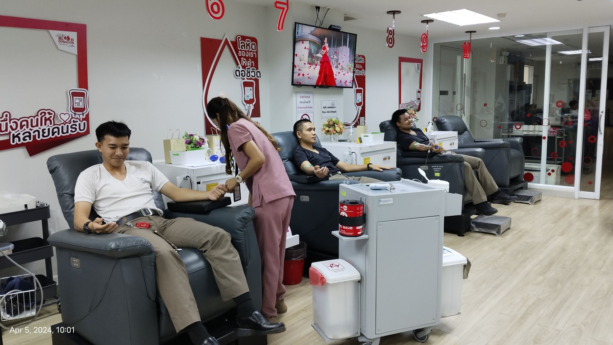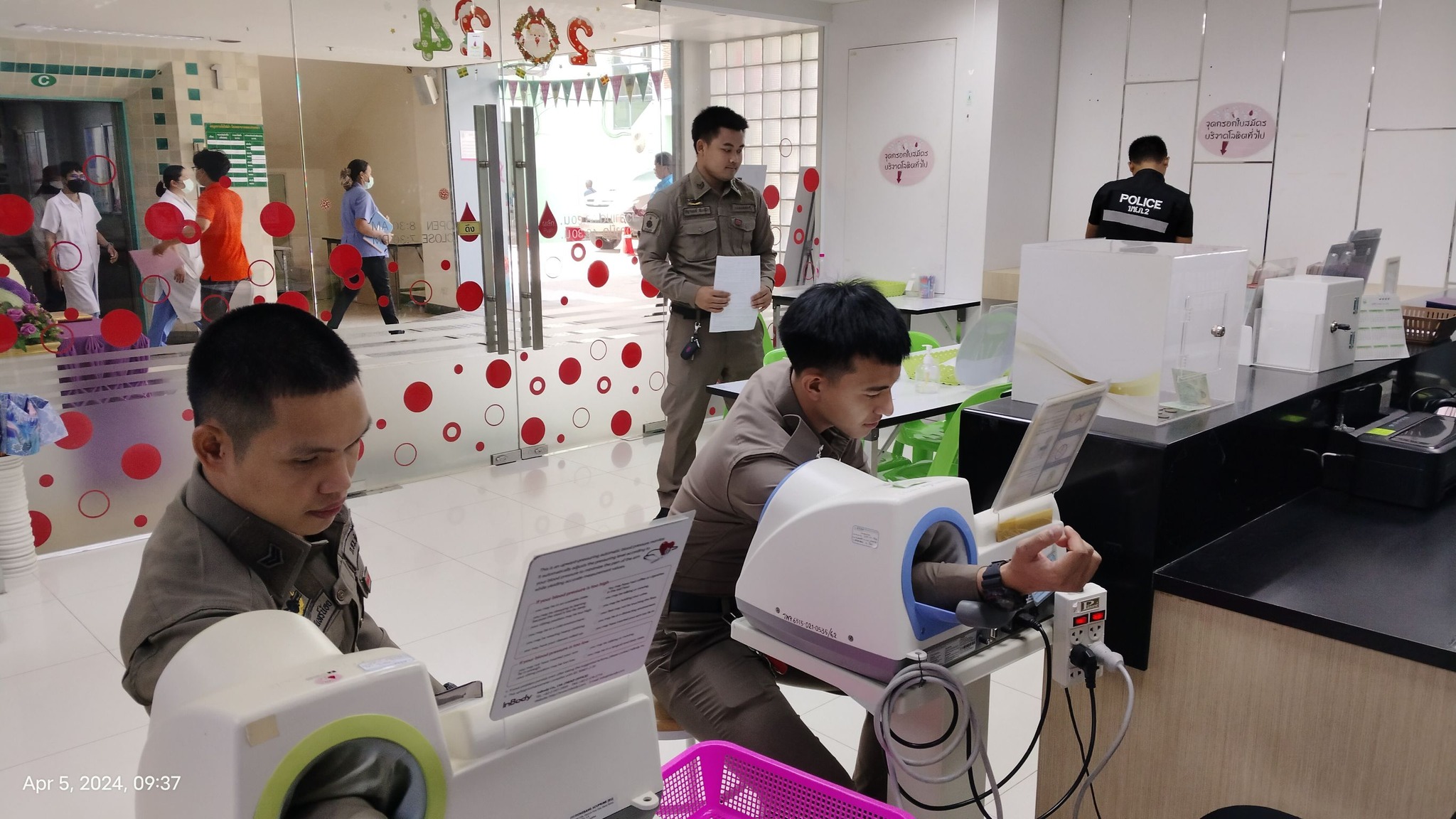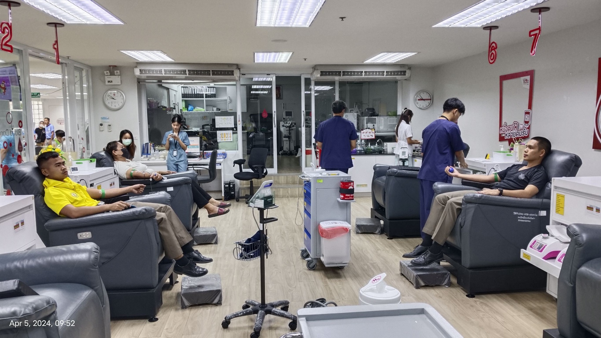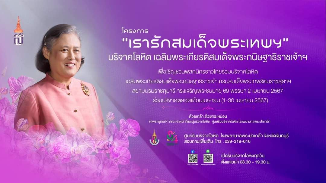 5 เม.ย.67 เวลา 09.00 น. พ.ต.อ.เฉลิมเดช เฉลิมวงศ์ รอง ผบก.ภ.จว.จันทบุรี พร้อมด้วย พ.ต.อ.ราเมศ ชนะศุภกาญจน์ ผกก.ฝอ.ภ.จว.จันทบุรี คณะแม่บ้านตำรวจภูธรจังหวัดจันทบุรี และข้าราชการตำรวจในสังกัด สภ.โป่งน้ำร้อน, สภ.บ้านแปลง และ สภ.สอยดาว ร่วมกิจกรรมบริจาคโลหิต เนื่องในโอกาสวันคล้ายวันพระราชสมภพสมเด็จพระกนิษฐาธิราชเจ้า กรมสมเด็จพระเทพรัตนราชสุดาฯ สยามบรมราชกุมารี ณ ศูนย์บริจาคโลหิต รพ.พระปกเกล้าจันทบุรี