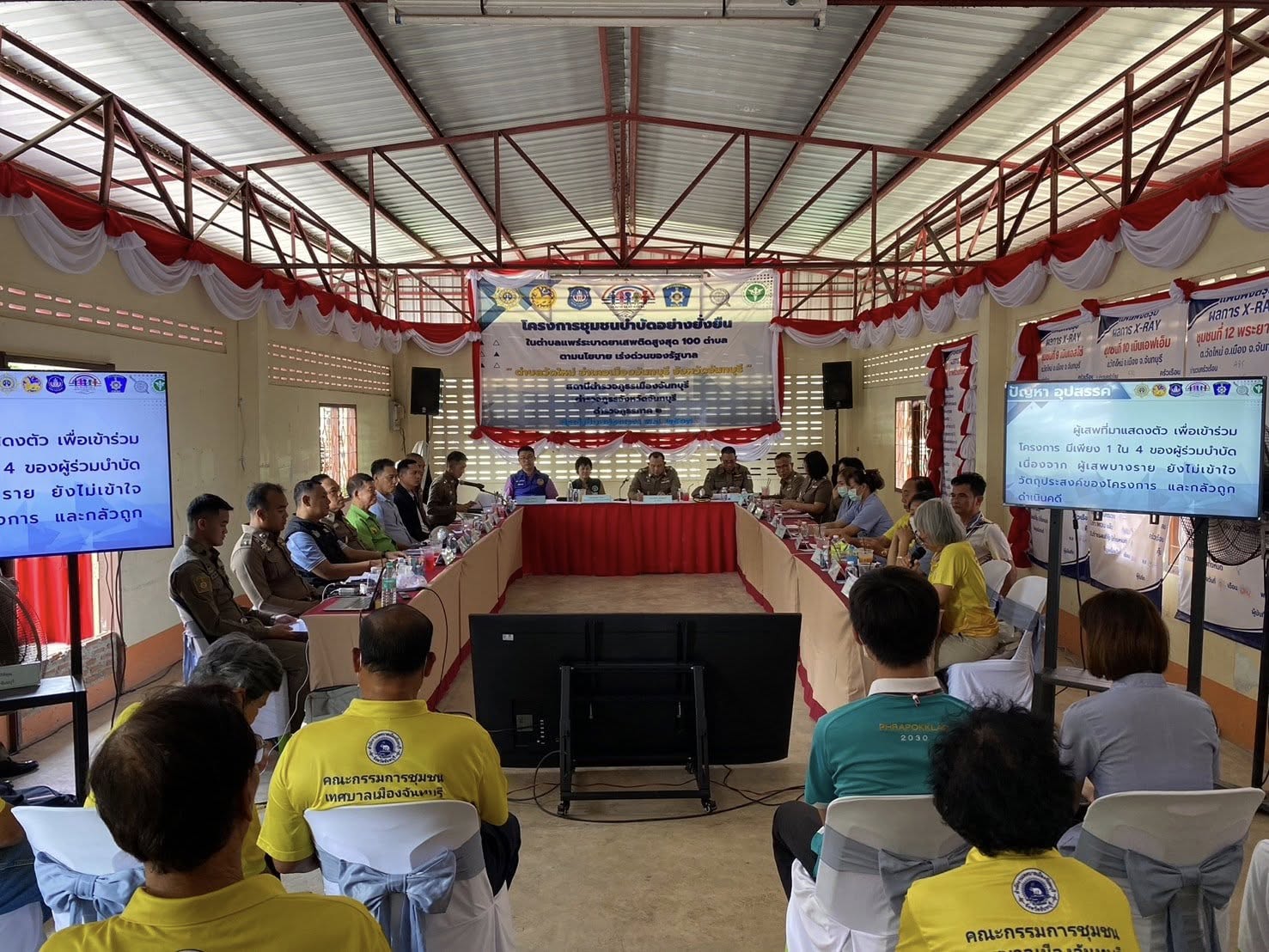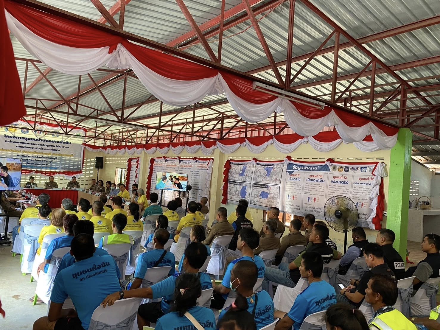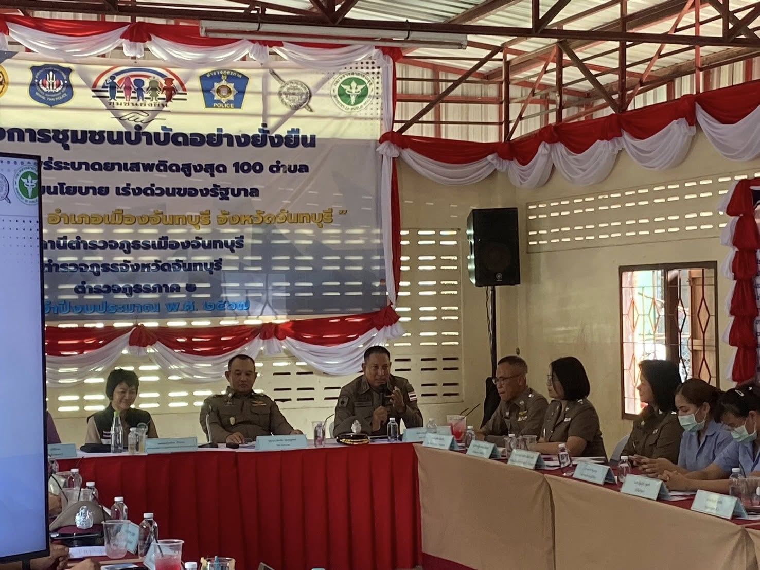 วันที่ 10 เม.ย.67 เวลา 14.00 น. พล.ต.ต. ฉัตรชัย สุรเชษฐพงษ์ รอง ผบช.ภ.๒, พ.ต.อ.คมน์สรณ์ มาบำรุง รอง ผบก.ภ.จว.จันทบุรี, พ.ต.อ.เสกสรรค์ ศรีเพริศ ผกก.สภ.เมืองจันทบุรี พร้อมคณะ ได้ตรวจเยี่ยมโครงการชุมชนบำบัดอย่างยั่งยืนในตำบลแพร่ระบาดยาเสพติดสูงสุด 100 ตำบลตามนโยบาย เร่งด่วนของรัฐบาล “ต.วัดใหม่ อ.เมือง จ.จันทบุรี” ณ ศูนย์ปฏิบัติการโครงการชุมชนบำบัดอย่างยั่งยืน (อาคารเอนกประสงค์ศูนย์พัฒนาเด็กเล็ก) ชุมชนที่ 10 ต.วัดใหม่ อ.เมือง จ.จันทบุรี