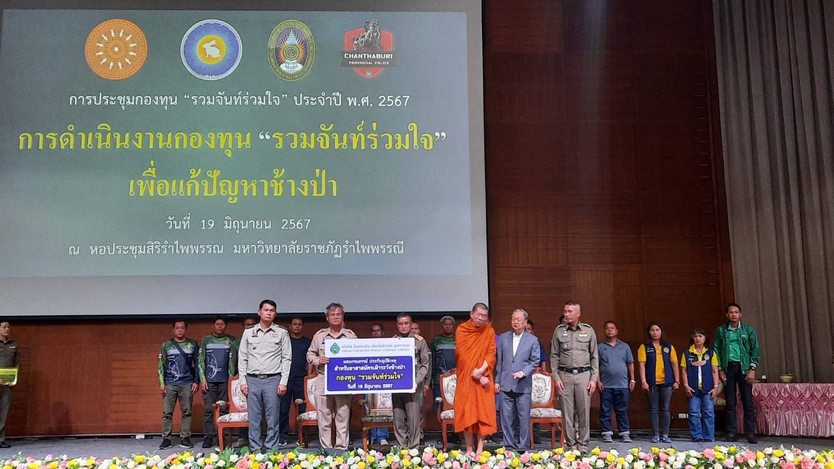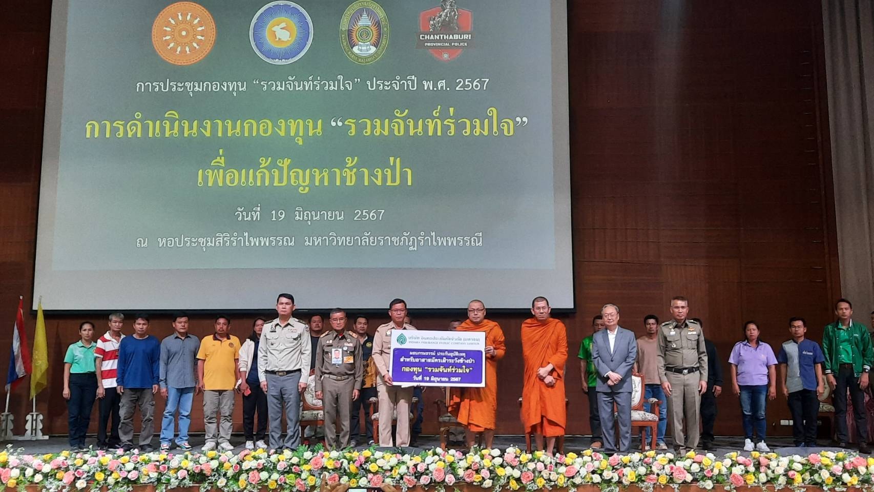จังหวัดจันทบุรี ร่วมกับ ตำรวจภูธรจังหวัดจันทบุรี และ มหาวิทยาลัยราชภัฏรำไพพรรณี จัดการประชุมใหญ่สามัญประจำปี การดำเนินงานกองทุน “รวมจันท์ร่วมใจ”เพื่อแก้ไขปัญหาช้างป่า ประจำปี พ.ศ. 2567 โดยได้รับความเมตตาจาก พระธรรมวชิรเมธี เจ้าอาวาสวัดหงส์รัตนาราม เป็นประธานฝ่ายสงฆ์ และได้รับเกียรติจาก พลเอกเฉลิมชัย สิทธิสาท องคมนตรี ประธานฝ่ายฆราวาส