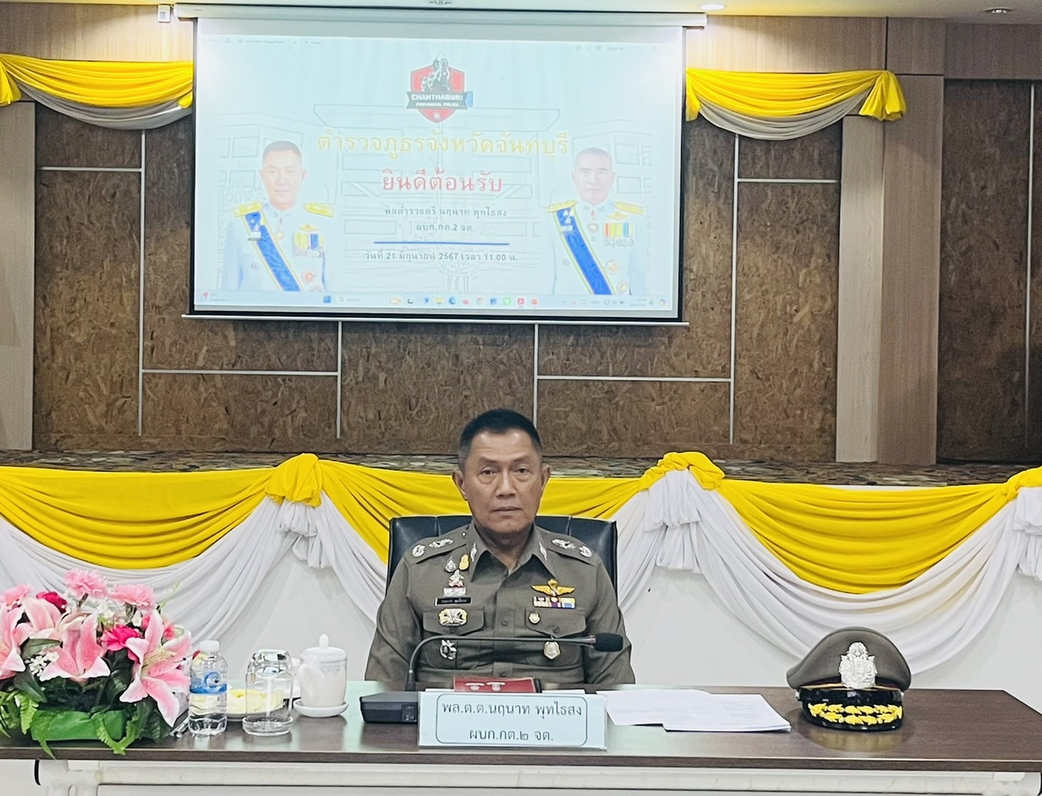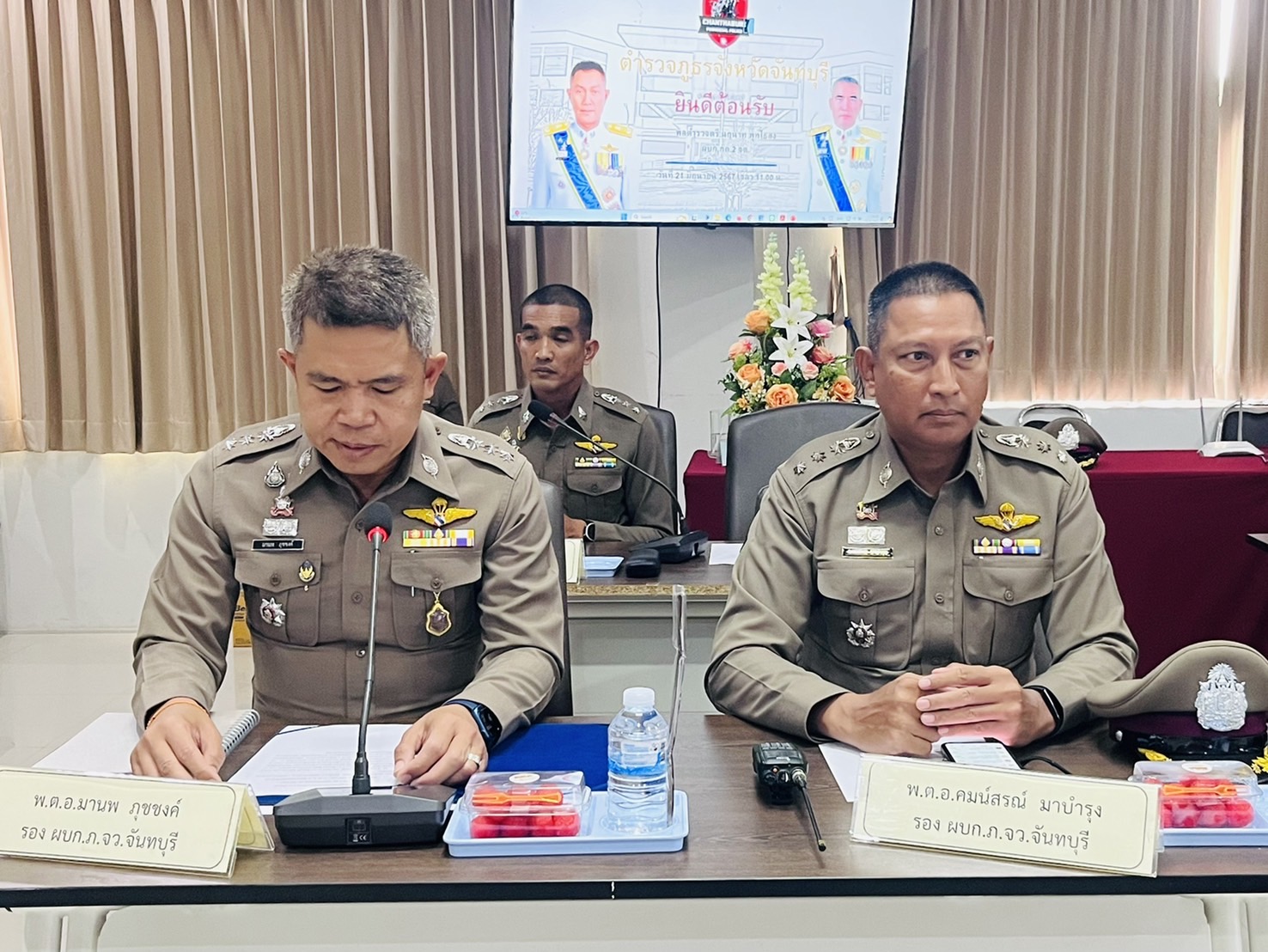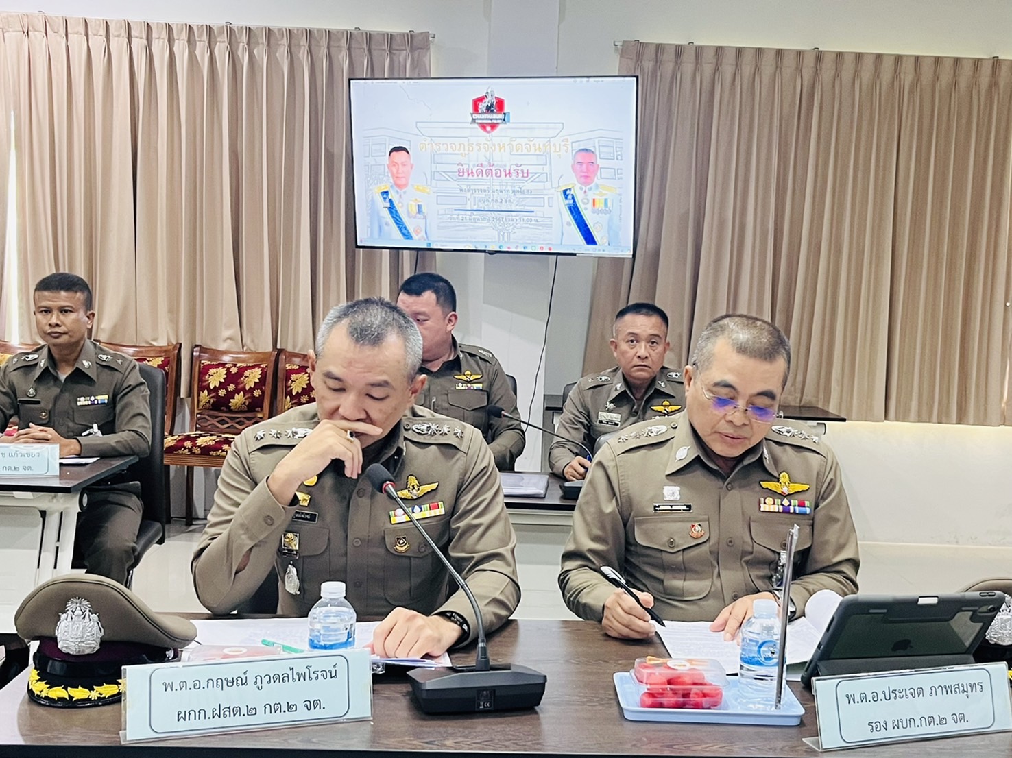 พล.ต.ต.นฤนาท พุทไธสง ผบก.กต.2 จต.ได้เดินทางมาตรวจราชการในพื้นที่ ภ.จว.จันทบุรี โดยมี พ.ต.อ.มานพ ภุชชงค์, พ.ต.อ.คมน์สรณ์ มาบำรุง และ พ.ต.อ.ยอดชาย จำปาทอง รอง ผบก.ภ.จว.จันทบุรี ให้การต้อนรับ โดยมี ผกก.สภ.ในสังกัด, ผกก.สอบสวนฯ, ผกก.สืบสวนฯ, ผกก.ฝอ.ฯ, รอง ผกก.ฝอ. และ สว.ฝอ.ฯ เข้าร่วมประชุมและรับฟังคำแนะนำ
