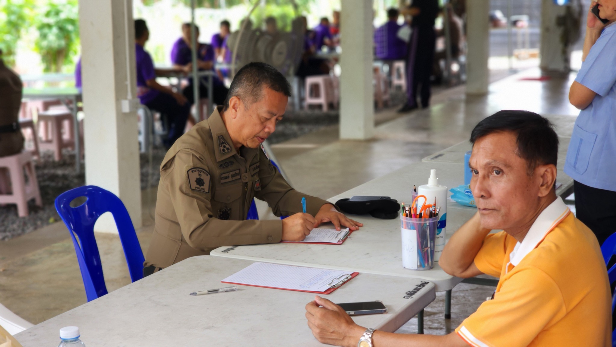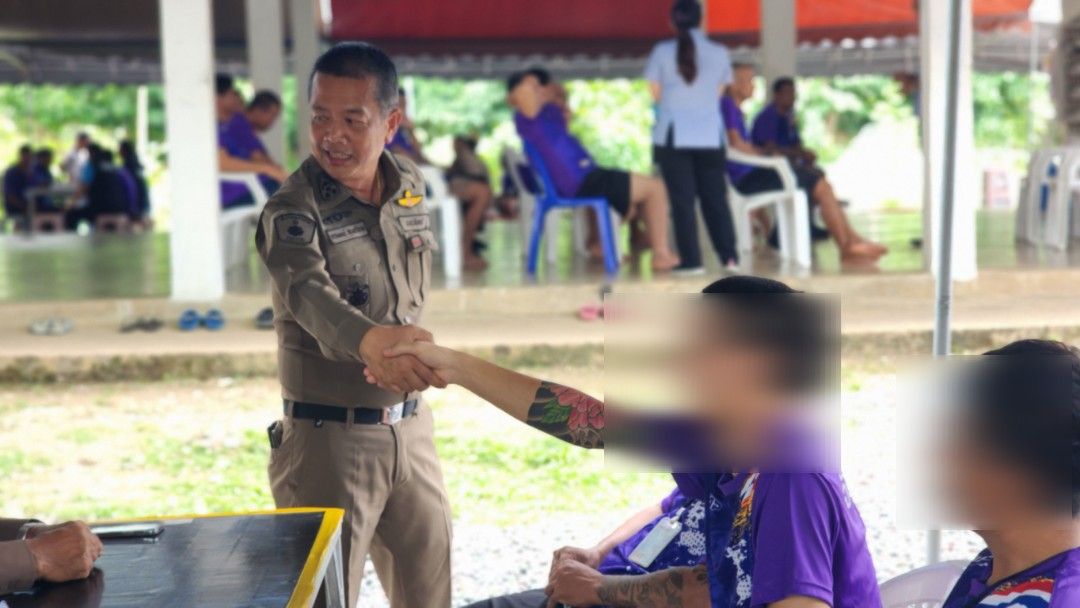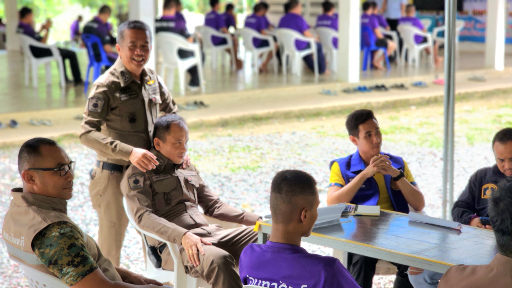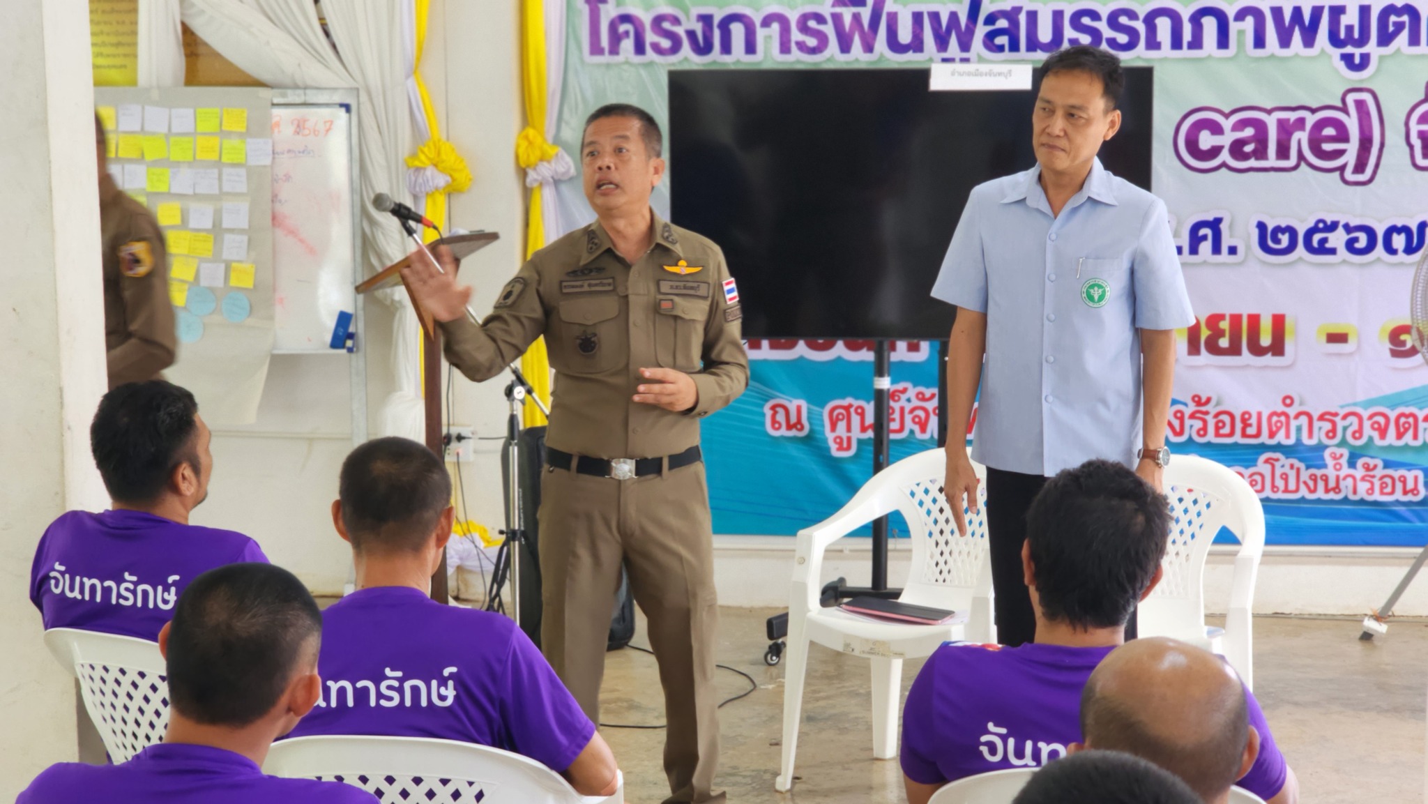 พ.ต.อ.อรรฆพงษ์ สุนทรวิภาต รอง ผบก.ภ.จว.จันทบุรี ร่วมกิจกรรมวางแผนชุมชนก่อนจำหน่ายให้กับผู้เข้าร่วมฟื้นฟูฯ ตามโครงการฟื้นฟูสมรรถภาพผู้ติดยาเสพติดระยะยาว (Long Term Care) จังหวัดจันทบุรี