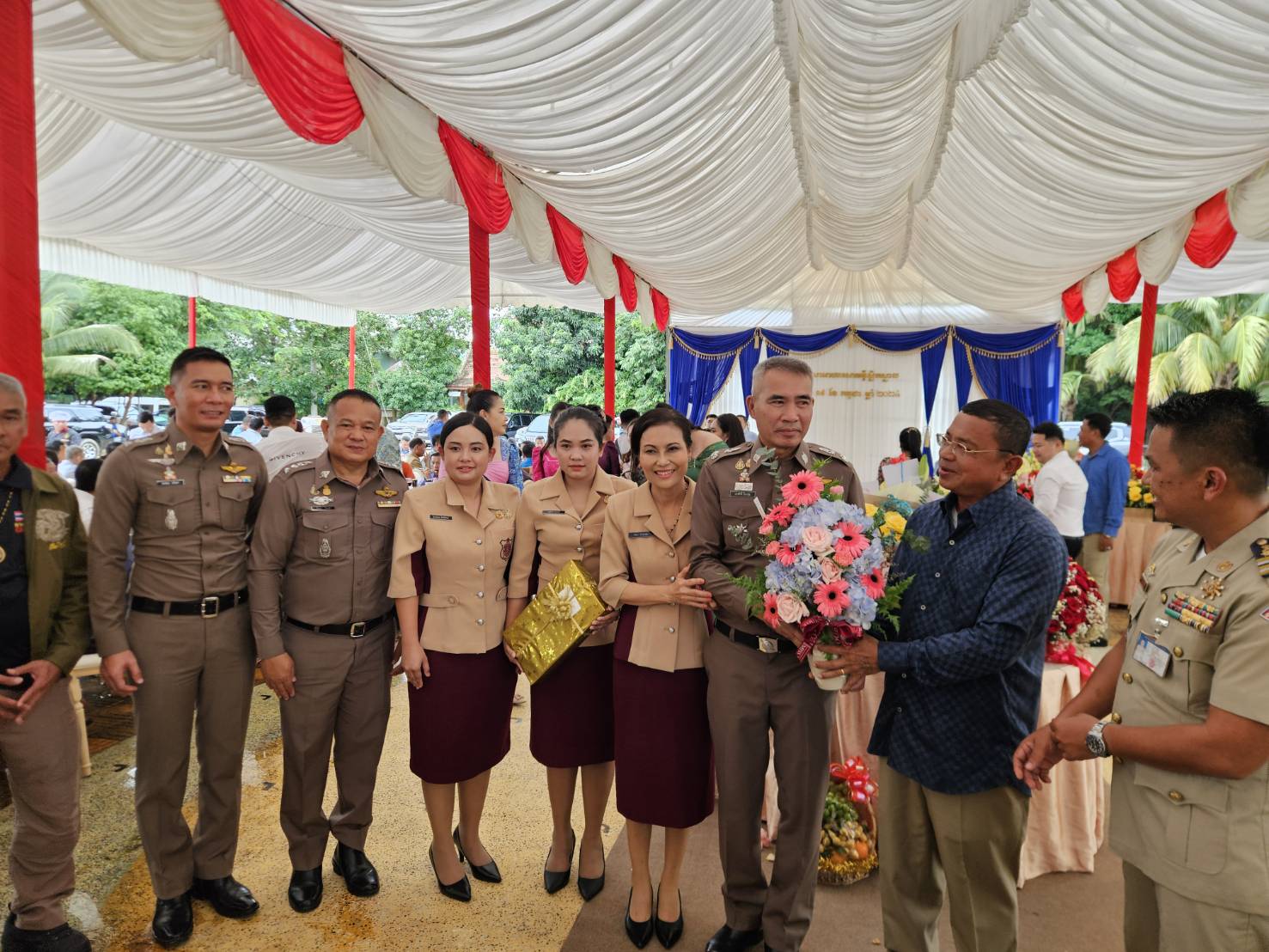 ร่วมแสดงความยินดีกับ พล.ต.ท.ณัน เอง บุญจันทร์ ผู้บังคับการตำรวจภูธรจังหวัดพระตะบอง เนื่องในโอกาสรับตำแหน่งใหม่ และ พล.ต.ท.ซาด คิมซาน อดีตผู้บังคับการตำรวจภูธรจังหวัดพระตะบอง เนื่องในโอกาสเกษียณอายุราชการ เพื่อเสริมสร้างความสัมพันธ์ที่ดีระหว่างประเทศไทย – กัมพูชา เนื่องจากเป็นจังหวัดที่มีพื้นที่ชายแดนติดกับจังหวัดจันทบุรี
