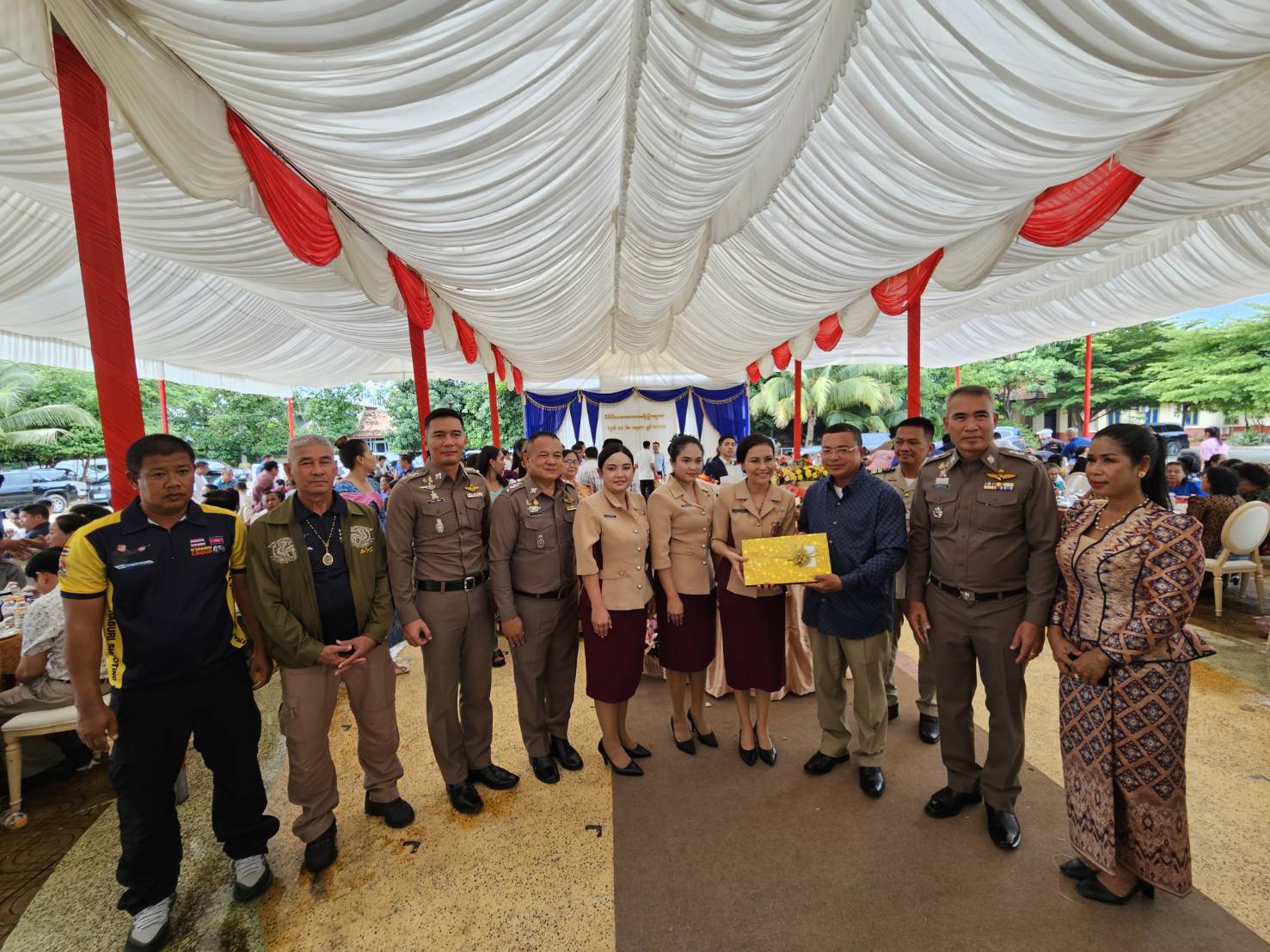 พล.ต.ต.ผดุงศักดิ์ รักษาสุข ผบก.ภ.จว.จันทบุรี, พ.ต.อ.ปัญญา เรือนดี ผกก.สภ.บ้านแปลง, พ.ต.ท.คมชนะ อนันตา รอง ผกก.สส.สภ.สะตอน และ คุณทัชยา รักษาสุข ประธานแม่บ้านตำรวจภูธรจังหวัดจันทบุรี พร้อมคณะ