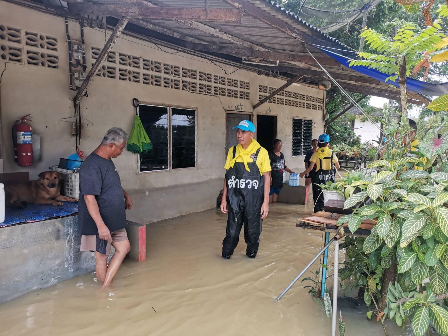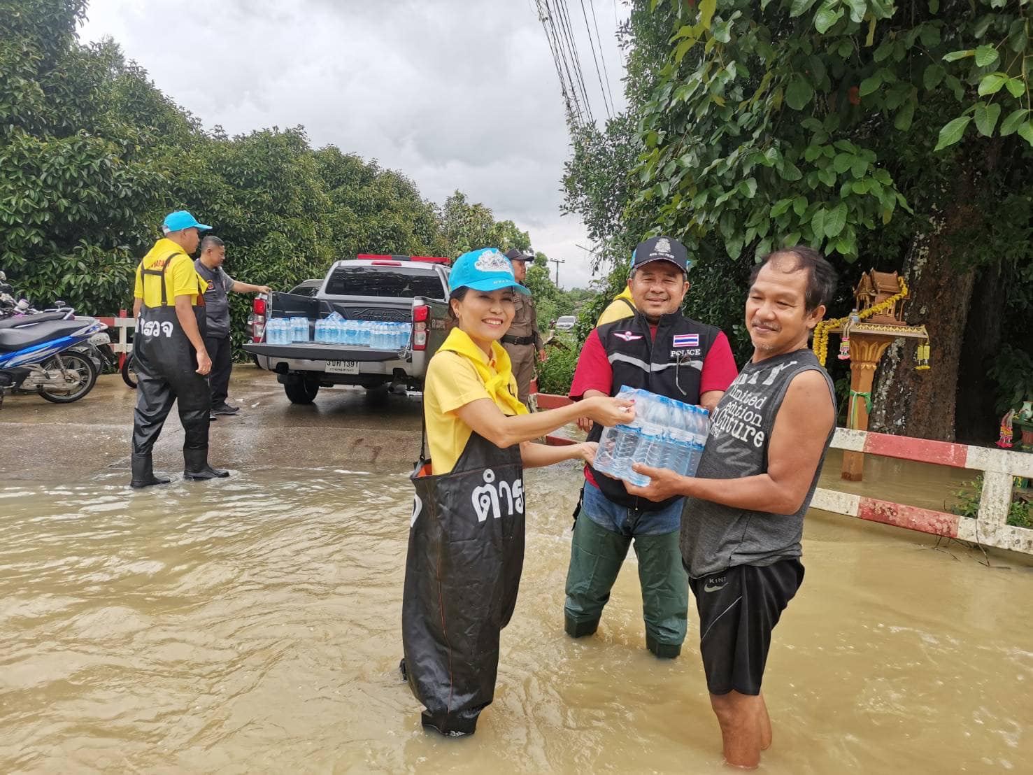 พล.ต.ต.ผดุงศักดิ์ รักษาสุข ผบก.ภ.จว.จันทบุรี พร้อมด้วย คุณทัชยา รักษาสุข ประธานแม่บ้านตำรวจภูธรจังหวัดจันทบุรี ผกก.สภ.มะขาม และเจ้าหน้าที่ตำรวจจิตอาสา สภ.มะขาม ออกให้การช่วยเหลือประชาชนที่ได้รับผลกระทบจากน้ำท่วม น้ำป่าไหลหลาก มอบน้ำดื่มเพื่อช่วยเหลือประชาชนที่ได้รับความเดือดร้อน ดูแลความเรียบร้อย ในพื้นที่ที่มีน้ำท่วมขัง พร้อมกำชับการปฏิบัติให้ข้าราชการตำรวจคอยอำนวยความสะดวกประชาชน