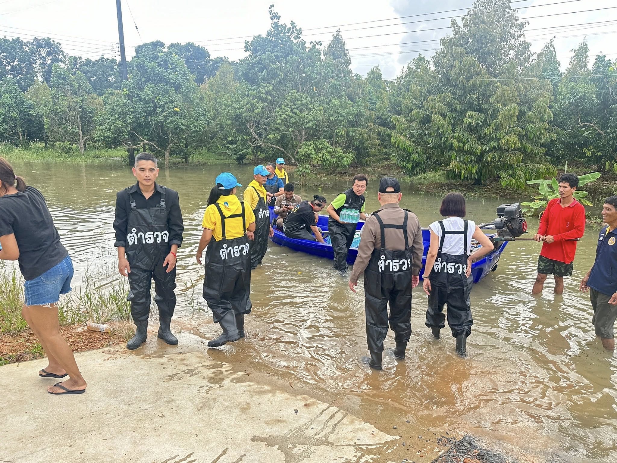 พ.ต.อ.ธราเทพ ตูพานิช รอง ผบก.ภ.จว.จันทบุรี พร้อมด้วย พ.ต.ท.วีรพล สิทธิพันธ์ สว.(สอบสวน)ฯ พ.ต.ท.ชัยชาญ ศรีทอง สว.สส.ฯ ร.ต.อ.หญิง สุขใจ ดอกไม้ รอง สว.ธร. สภ.มะขาม พร้อมด้วย จิตอาสาพระราชทาน สภ.มะขาม นายธนากร พงศ์พลูทอง ประธาน กต.ตร. สภ.มะขาม กำนันตำบลวังแซ้ม ผู้ช่วยผู้ใหญ่บ้านแตงเม รวมทั้งหมด 15 นาย ออกช่วยเหลือผู้ประสบภัยน้ำท่วม มอบถุงยังชีพ ให้กับชาวบ้านที่ถูกน้ำท่วม สอบถามความเป็นอยู่ ปัญหาต่างๆ