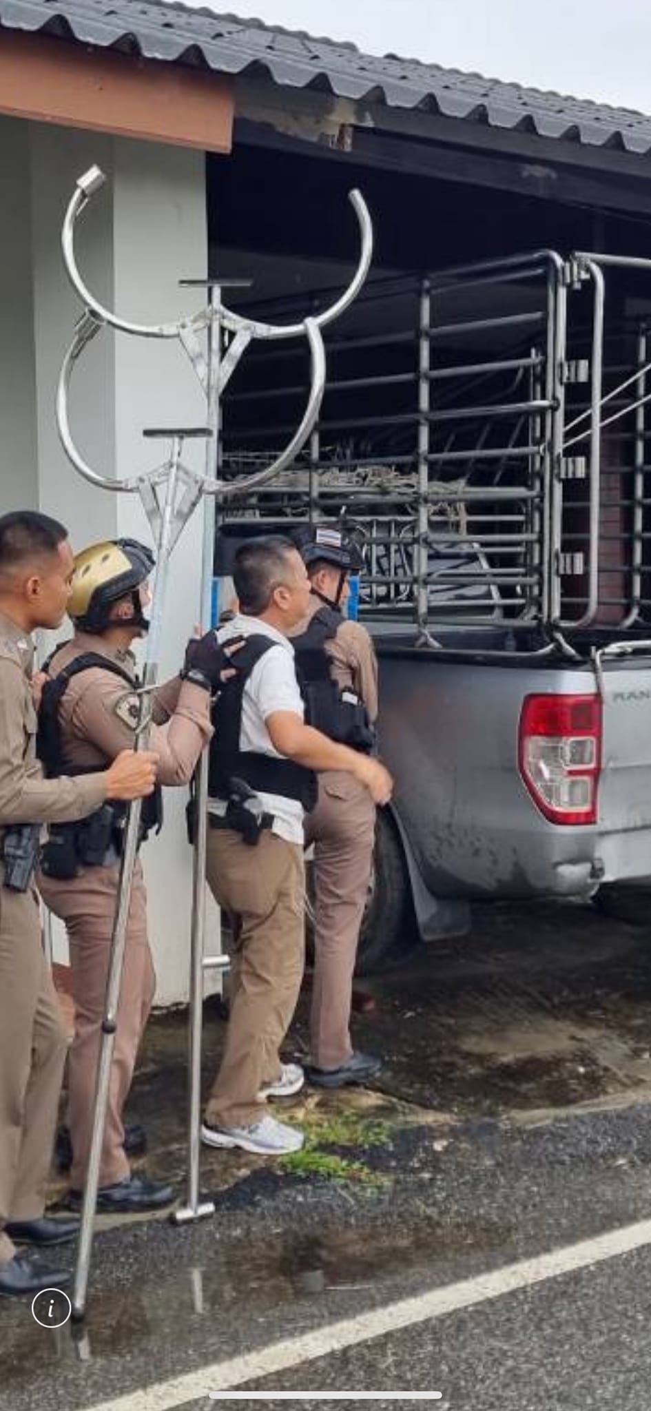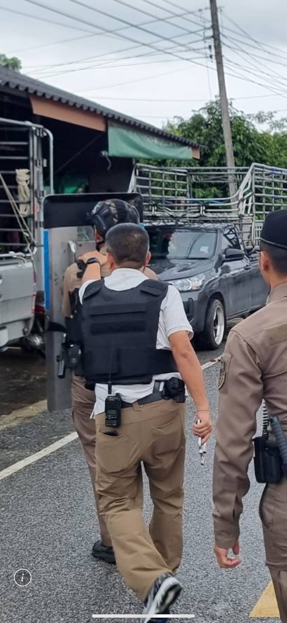 ได้รับแจ้งเหตุเบื้องต้น มีชายคุ้มคลั่ง จับภรรยาเป็นตัวประกัน อยู่ภายในบ้าน มีอาวุธปืนพกสั้น ไม่ทราบยี่ห้อ ขนาด 9 มม. เหตุเกิดที่บริเวณ บ้านพักไม่ทราบเลขที่ ซอยหลังโรงเรียนแหลมสิงห์วิทยาคม