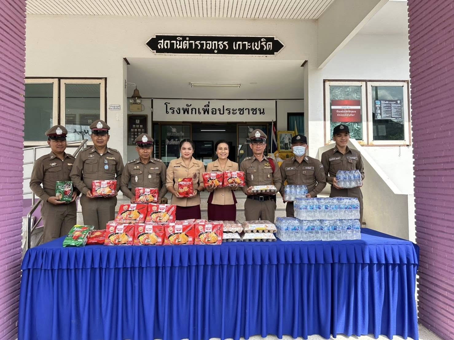 คุณทัชยา รักษาสุข ประธานแม่บ้านตำรวจ ภ.จว. จันทบุรี พร้อมด้วย แม่บ้านตำรวจฯ และข้าราชการตำรวจ จำนวน 3 นาย เดินทางไปมอบสิ่งของ เพื่อบำรุงขวัญและกำลังใจ ให้แก่ข้าราชการตำรวจในสังกัด จำนวน 6 สภ. ดังนี้