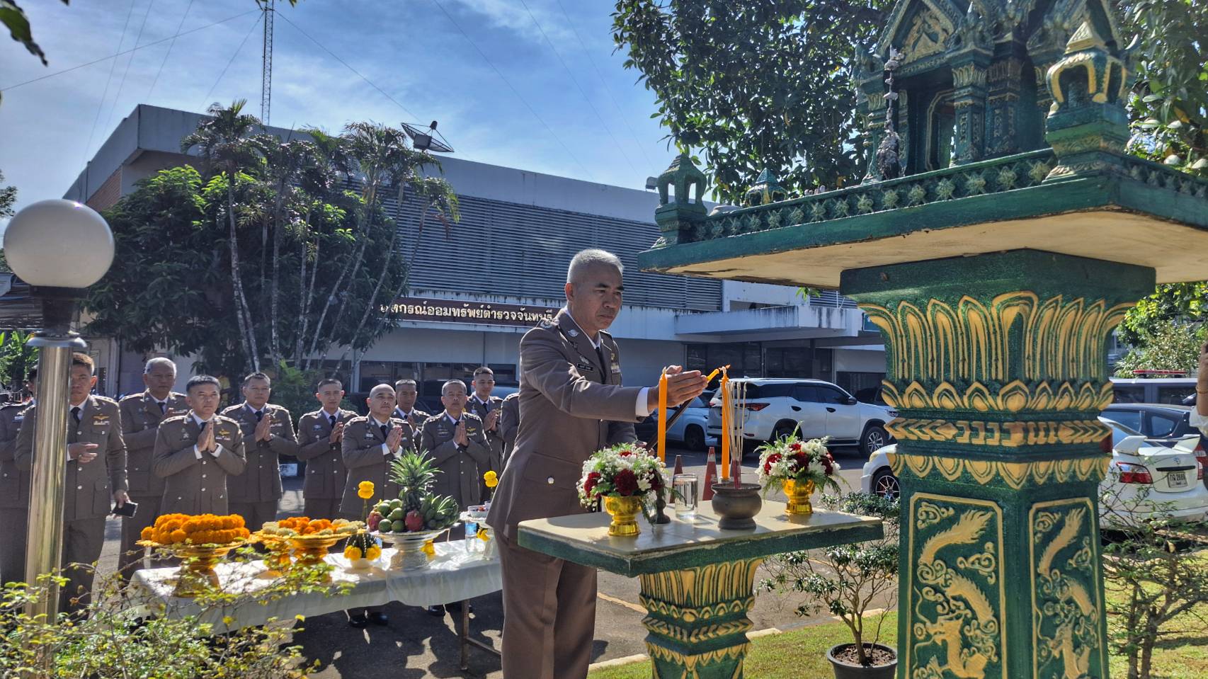 เวลา 09.00 น. ผบก.ภ.จว.จันทบุรี พร้อมด้วย รอง ผบก ฯ ถวายสักการะพระภูมินครราช บริเวณหน้าเสาธง อาคาร 1 ภ.จว.จันทบุรี และทำพิธีสักการะรูปเคารพ พล.ต.อ.เผ่า ศรียานนท์ อาคาร 2 ชั้น 2
