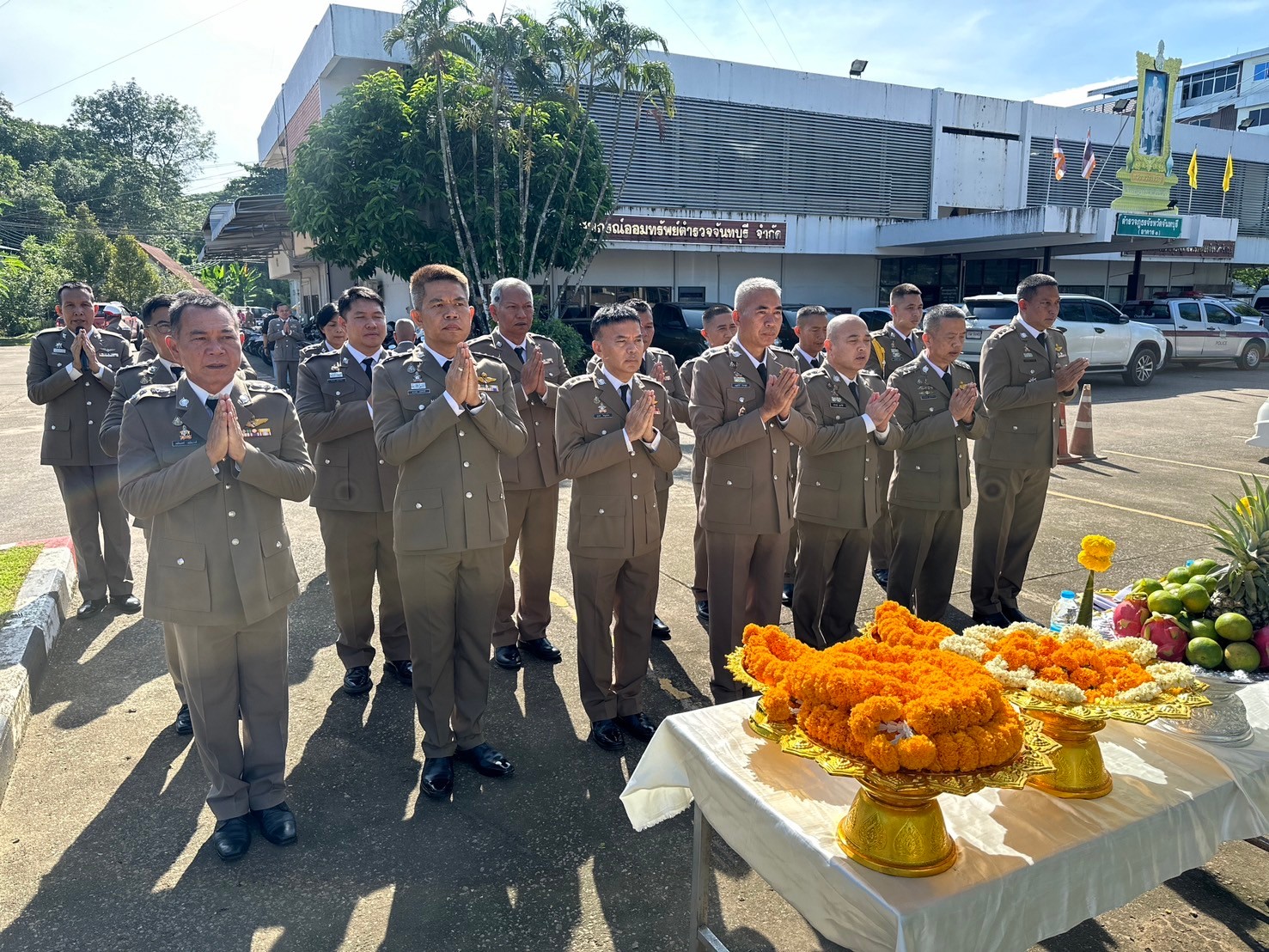 วันที่ 17 ต.ค.67 พล.ต.ต.ผดุงศักดิ์ รักษาสุข ผบก.ภ.จว.จันทบุรี พร้อมด้วย รอง ผบก.ฯ, ผกก.สืบสวนฯ, ผกก.(สอบสวน)ฯ และข้าราชการตำรวจในสังกัด ภ.จว.จันทบุรี ร่วมงานพิธีเนื่องในวันคล้ายวันสถาปนาสำนักงานตำรวจแห่งชาติ โดยมีกำหนดการ ดังนี้