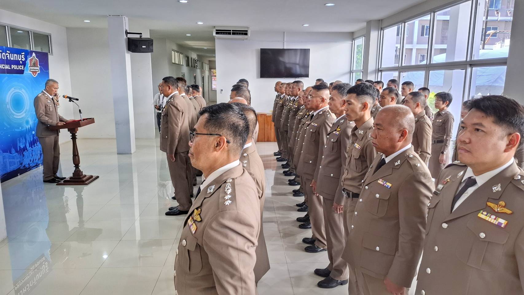 เวลา 09.30 น. ผบก.ภ.จว.จันทบุรี อ่านสาร ผบ.ตร. และให้โอวาท แก่ข้าราชการตำรวจในสังกัด