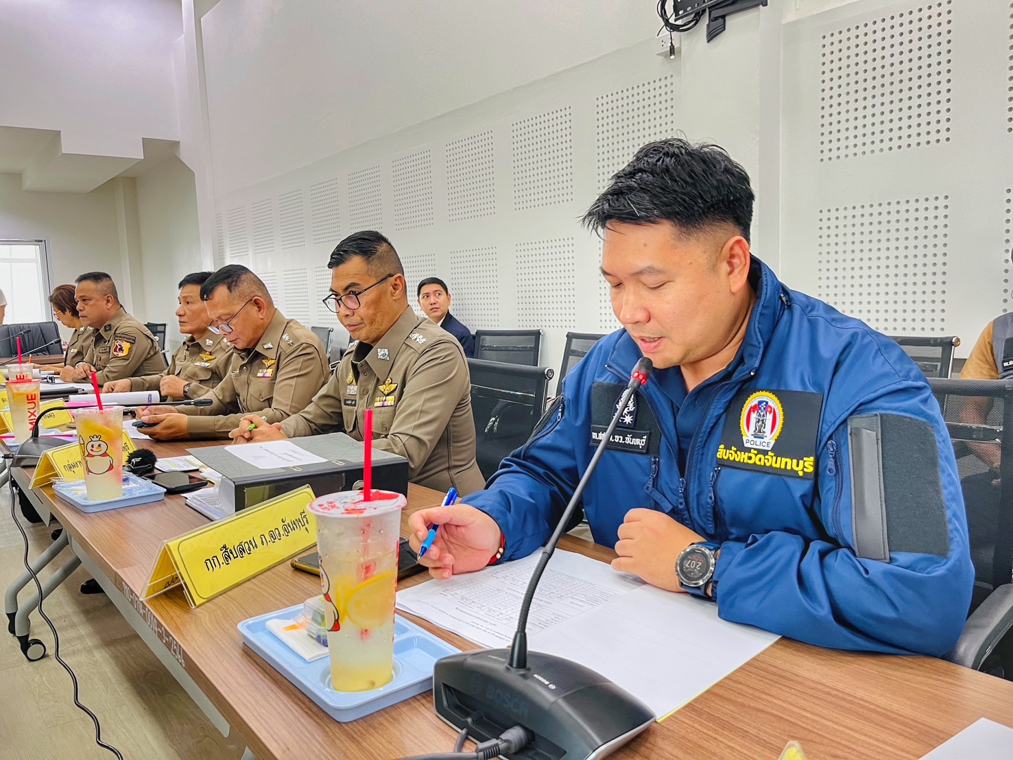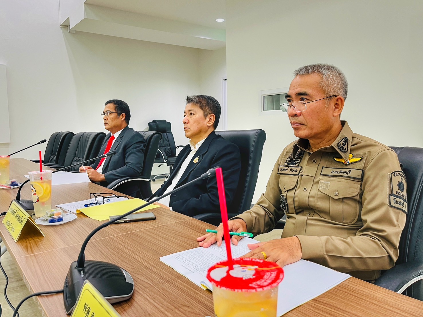 นายมนต์สิทธิ์ ไพศาลธนวัฒน์ ผู้ว่าราชการจังหวัดจันทบุรี ประธานการประชุม, พล.ต.ต.ผดุงศักดิ์ รักษาสุข ผบก.ภ.จว.จันทบุรี (รองประธานคนที่ 1) และ นายฐานันท์ แก้วเพชร ผู้แทนอัยการจังหวัดจันทบุรี (รองประธานคนที่ 2) พร้อมด้วยคณะกรรมการ กต.ตร. ร่วมประชุมคณะกรรมการตรวจสอบและติดตามการบริหารงานตำรวจ จังหวัดจันทบุรี ครั้งที่ 3/2567