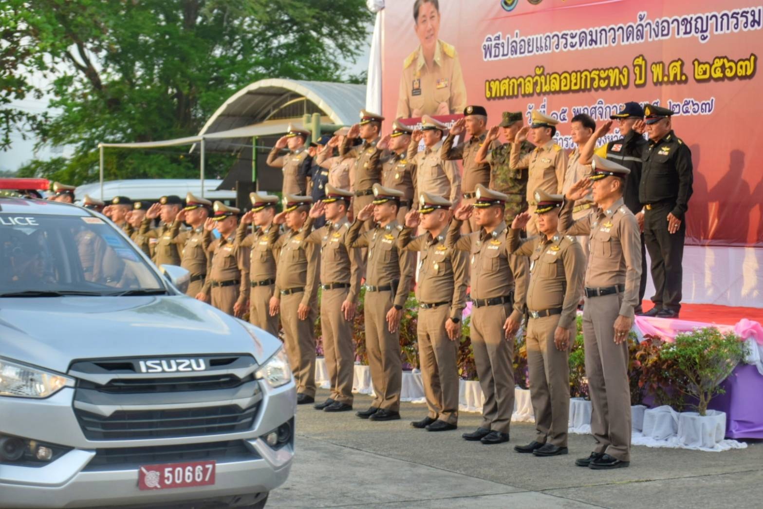 พล.ต.ต.ผดุงศักดิ์ รักษาสุข ผบก.ภ.จว.จันทบุรี พร้อมด้วย รอง ผบก.ภ.จวจันทบุรี และกำลังพลจากหน่วยงานในพื้นที่จังหวัดจันทบุรี ร่วมพิธีปล่อยแถวระดมกวาดล้างอาชญากรรมในช่วงเทศกาลประเพณีลอยกระทง ปี 2567 โดยมี นายมนต์สิทธิ์ ไพศาลธนวัฒน์ ผู้ว่าราชการจังหวัดจันทบุรี เป็นประธานในพิธี