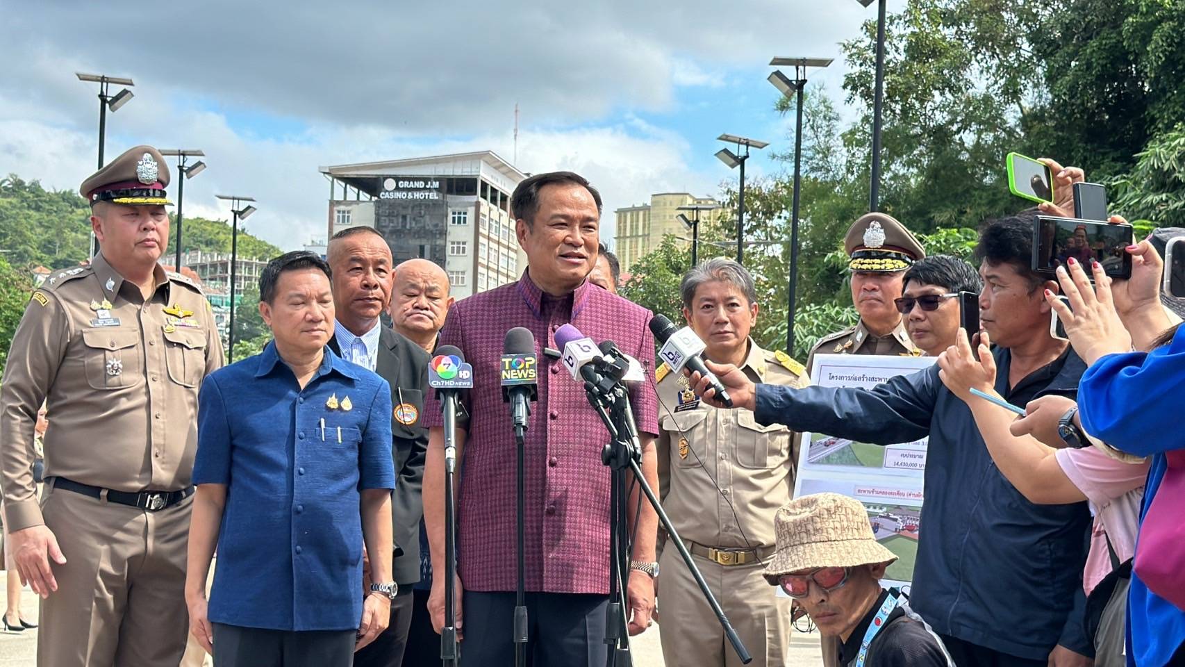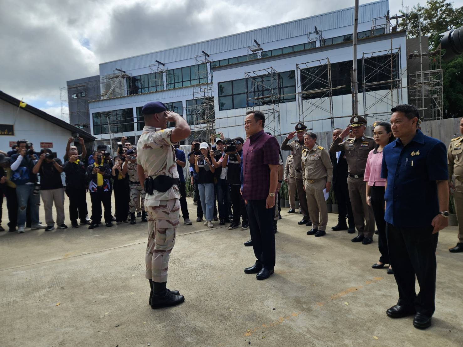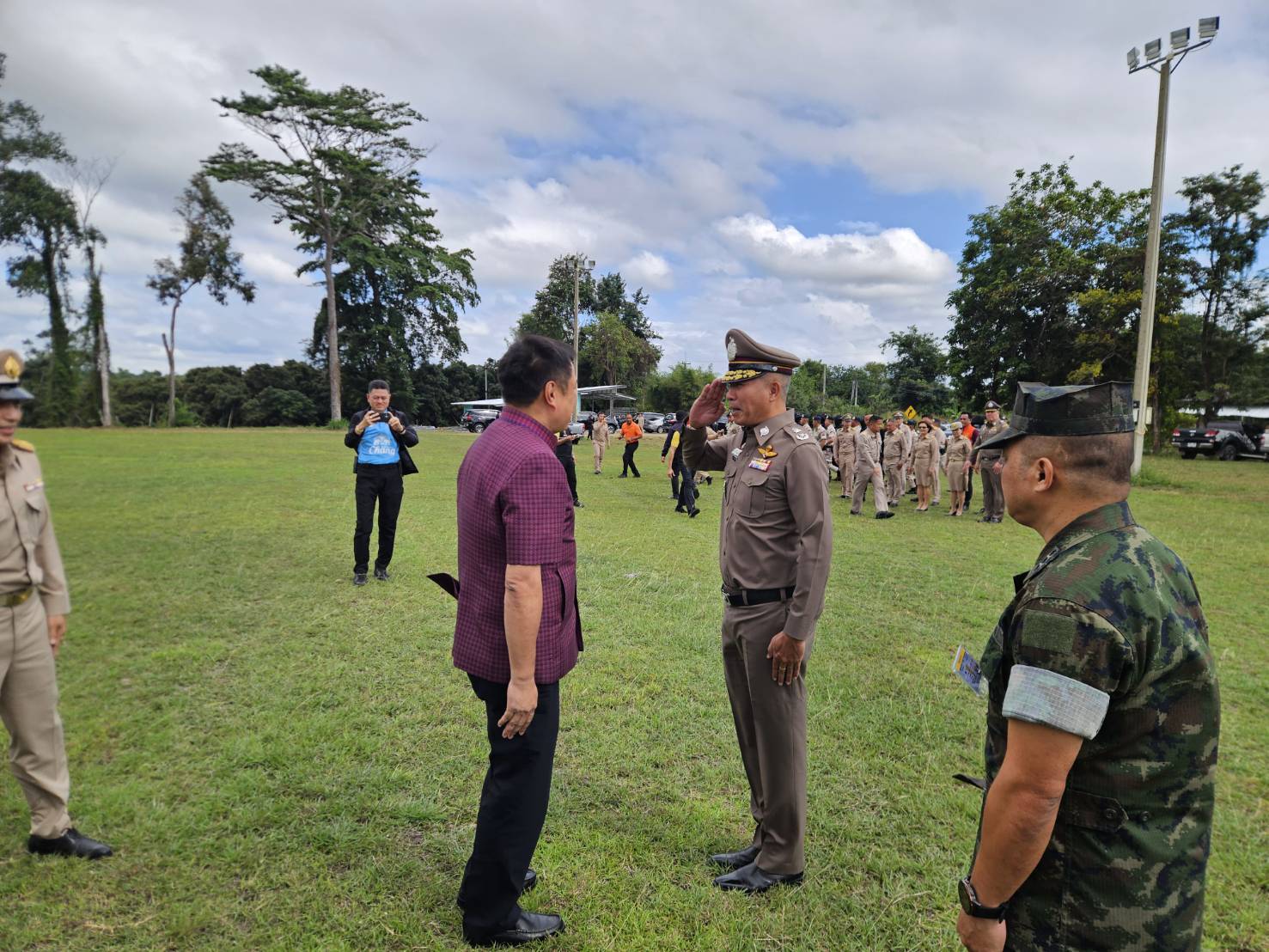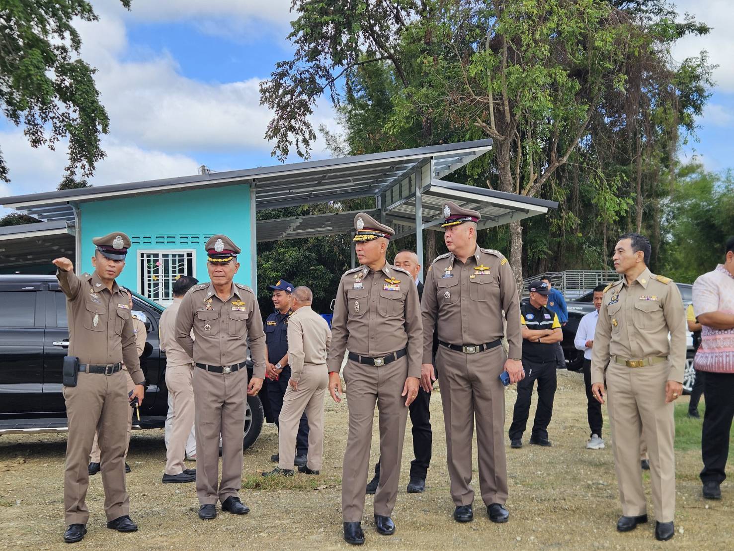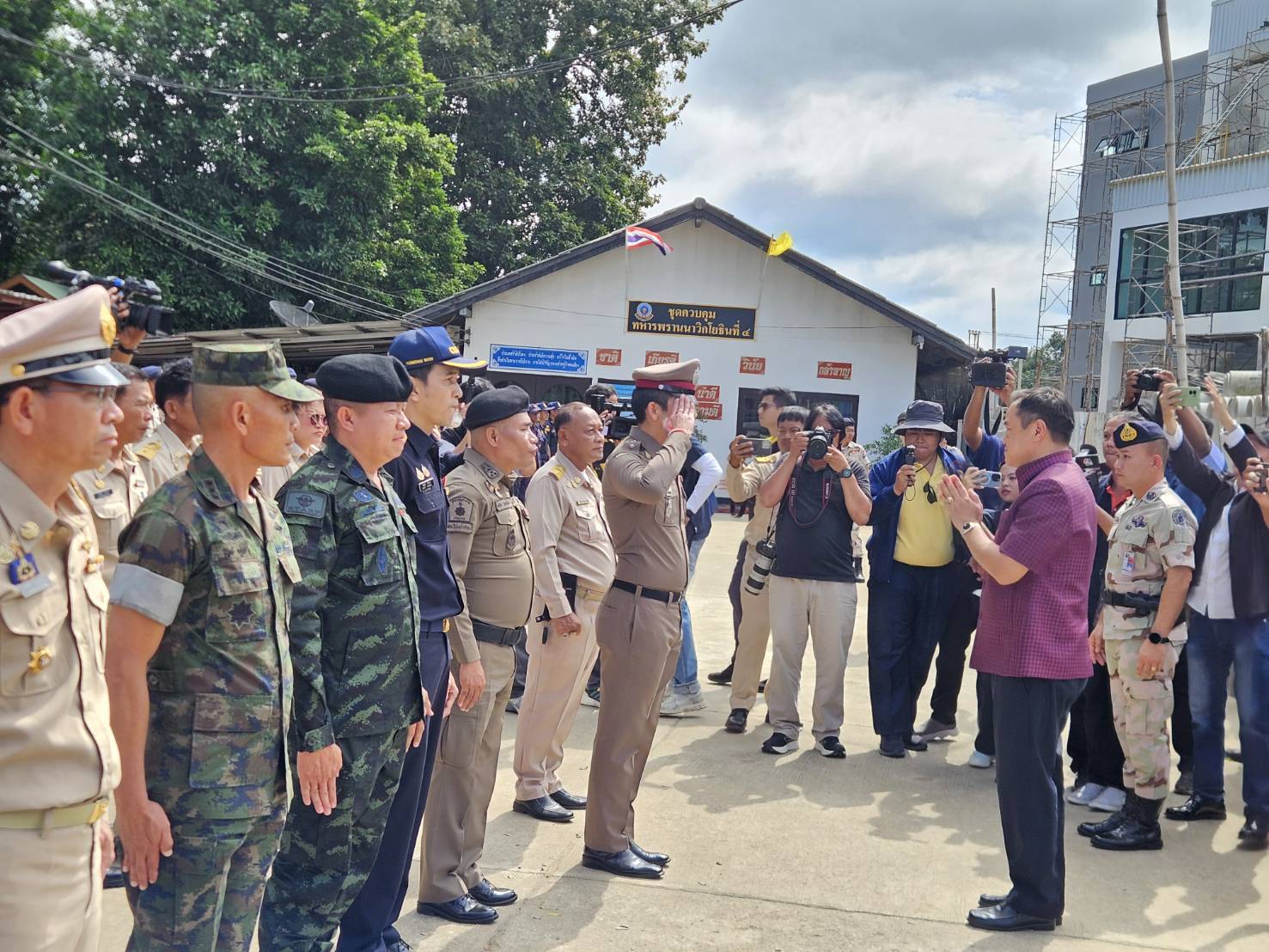 นายมนต์สิทธิ์ ไพศาลธนวัฒน์ ผู้ว่าราชการจังหวัดจันทบุรีพร้อมด้วยคณะ, พล.ต.ต.ผดุงศักดิ์ รักษาสุข ผบก.ภ.จว.จันทบุรี, พ.ต.อ.เฉลิมเดช เฉลิมวงศ์ รอง ผบก.ฯ, พ.ต.อ.วีรยศ การุณยธร รอง ผบก.ตม.2 รรท.ผกก.ตม.จว.จันทบุรี, พ.ต.อ.เสถียร เหลาเกิ้มหุ่ง ผกก.สภ.โป่งน้ำร้อน, ดร.รัฐวิทย์ ตั้งเกียรติพชร ประธานสมาคมการค้าชายแดนไทยกัมพูชา, หัวหน้าส่วนราชการต่างๆ ในพื้นที่จังหวัดจันทบุรี และข้าราชการตำรวจที่เกี่ยวข้อง