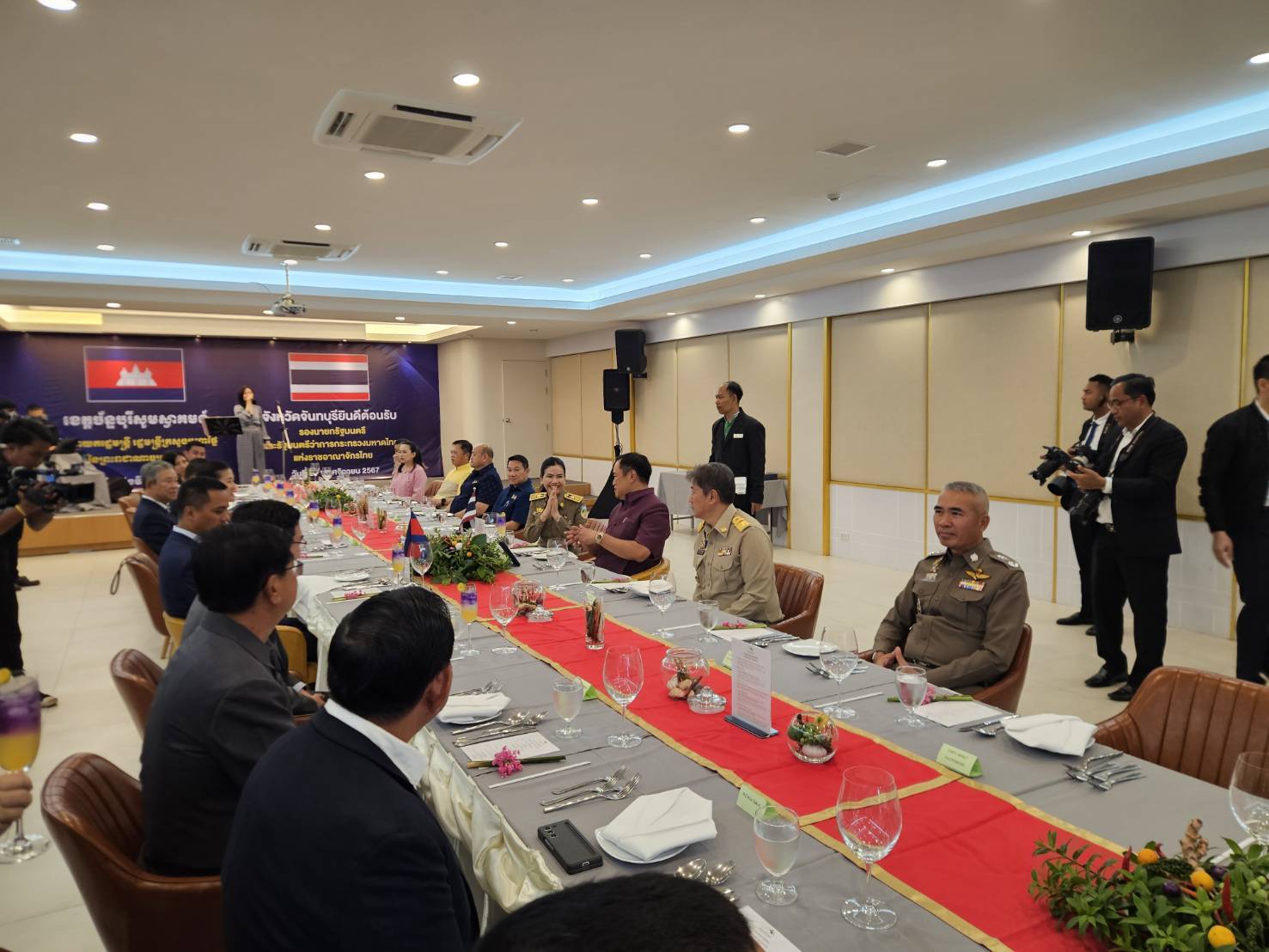 ร่วมต้อนรับ นายอนุทิน ชาญวีรกุล รองนายกรัฐมนตรีและรัฐมนตรีกระทรวงมหาดไทย ซึ่งได้เดินทางมายังพื้นที่ อ.โป่งน้ำร้อน จ.จันทบุรี เพื่อรอต้อนรับนายอภิสันติบัณฑิต ซอร์ ซกคา รองนายกรัฐมนตรีและรัฐมนตรีกระทรวงมหาดไทยแห่งราชอาณาจักรกัมพูชา พร้อมผู้ว่าราชการจังหวัดไพลิน และคณะ เพื่อหารือ เกี่ยวกับโครงการก่อสร้างขยายสะพานมิตรภาพ ไทย-กัมพูชา บริเวณจุดผ่านแดนบ้านผักกาดกับจังหวัดไพลิน ประเทศกัมพูชา โดยหลังจากให้การต้อนรับที่บริเวณกึ่งกลางสะพานมิตรภาพจุดผ่านแดนบ้านผักกาดแล้ว ได้รับประทานอาหารร่วมกันและลงนามในข้อตกลง (MOU) ในความร่วมมือในการดำเนินการก่อสร้างขยายสะพานมิตรภาพฯ ดังกล่าว ที่โรงแรมสอยดาวกู๊ดวิว โดยบรรยากาศการต้อนรับและตลอดทั้งกิจกรรม เป็นไปอย่างราบรื่น