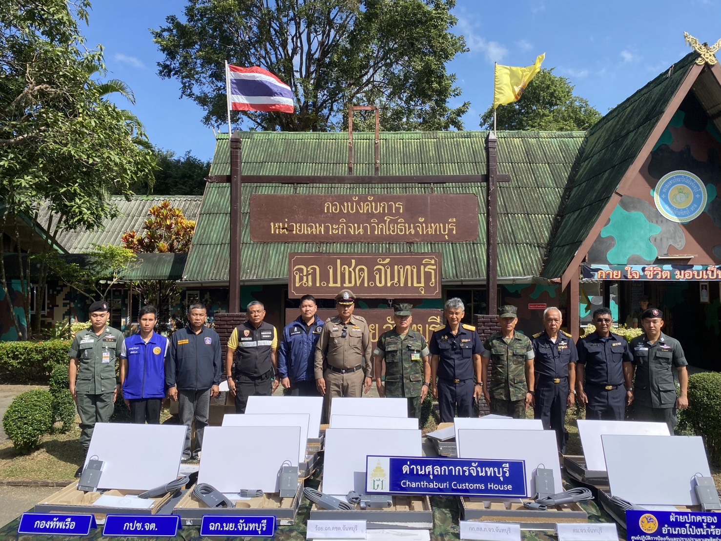 พ.ต.อ.คมน์สรณ์ มาบำรุง รอง ผบก.ภ.จว.จันทบุรี, พ.ต.อ.พีรพล เสลารัตน์ ผกก.สืบสวน ภ.จว.จันทบุรี, พ.ต.ท.ธนเดช หลาบมาลา รอง ผกก.สืบสวน, เจ้าหน้าที่ ทหาร ฉก.นย.จันทบุรี, ด่านศุลการกรจันทบุรี, กปช.จต., ตชด.11, จนท. ฝ่ายปกครอง อ.โป่งน้ำร้อน