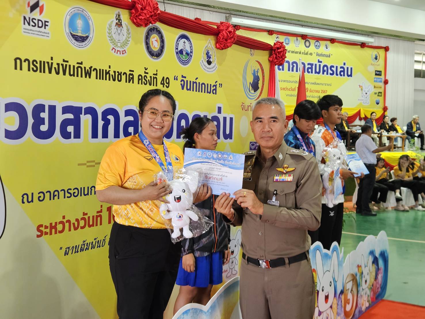 ร่วมเป็นประธานในพิธีมอบเหรียญรางวัล กีฬาแห่งชาติ ครั้งที่ 39 “จันท์เกมส์” ประเภทกีฬาฟุตซอลทั้งทีมหญิงและทีมชาย โดยผลการแข่งขัน ชนะเลิศ ประเภททีมหญิง ได้แก่ ทีมจังหวัดสุพรรณบุรี และประเภททีมชาย ได้แก่ ทีมจังหวัดนนทบุรี โดยได้มอบเหรียญรางวัลและของที่ระลึกแก่นักกีฬาที่ได้รับรางวัลและถ่ายภาพเป็นที่ระลึกร่วมกัน