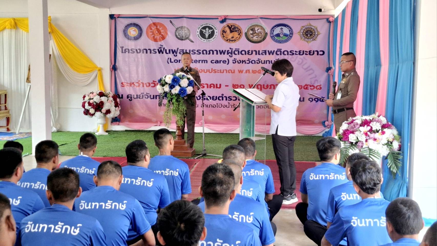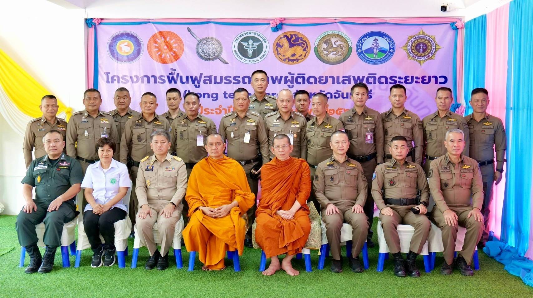 พล.ต.อ.ดร.ธัชชัย ปิตะนีละบุตร จตช เป็นประธานในพิธีเปิดโครงการฟื้นฟูสมรรถภาพผู้ติดยาเสพติดระยะยาว (Long term care) จังหวัดจันทบุรี ประจำปีงบประมาณ 2568 (รุ่นที่ 3) และได้รับความเมตตาจากพระธรรมวชิรเมธี เจ้าคณะภาค 1 เจ้าอาวาสวัดหงส์รัตนาราม เป็นประธานฝ่ายสงฆ์ โดยมี พล.ต.ต.ผดุงศักดิ์ รักษาสุข ผบก.ภ.จว.จันทบุรี เป็นผู้กล่าวรายงาน