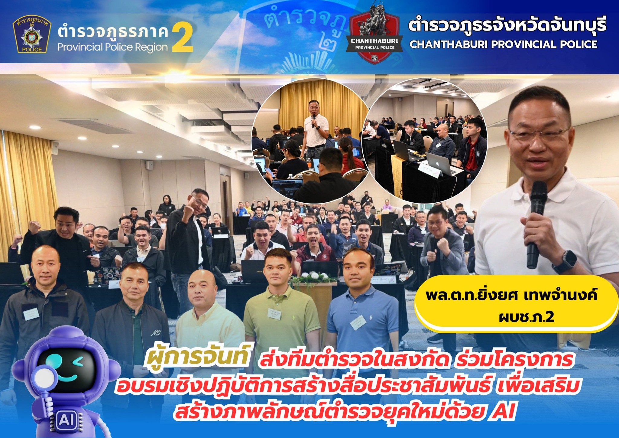 ตำรวจภูธรภาค 2 ได้จัด โครงการอบรมเชิงปฏิบัติการสร้างสื่อประชาสัมพันธ์ เพื่อเสริมสร้างภาพลักษณ์ตำรวจยุคใหม่ด้วย AI ณ โรงแรม J Inspired Pattaya โดยมีหน่วยงานในสังกัดเข้าร่วมอบรม