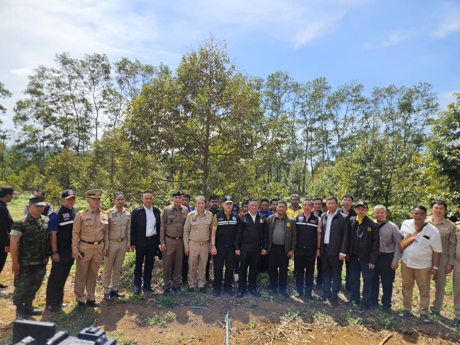 พล.ต.ต.ผดุงศักดิ์ รักษาสุข ผบก.ภ.จว.จันทบุรี, นายมนต์สิทธิ์ ไพศาลธนวัฒน์ ผู้ว่าราชการจังหวัดจันทบุรี, พ.ต.อ.ธราเทพ ตูพานิช รอง ผบก.ฯ, น.อ.เติมชัย มงคล รอง ผอ.รมน.จว.จบ., พลังงานจังหวัดจันทบุรี และเจ้าหน้าที่ส่วนที่เกี่ยวข้อง
