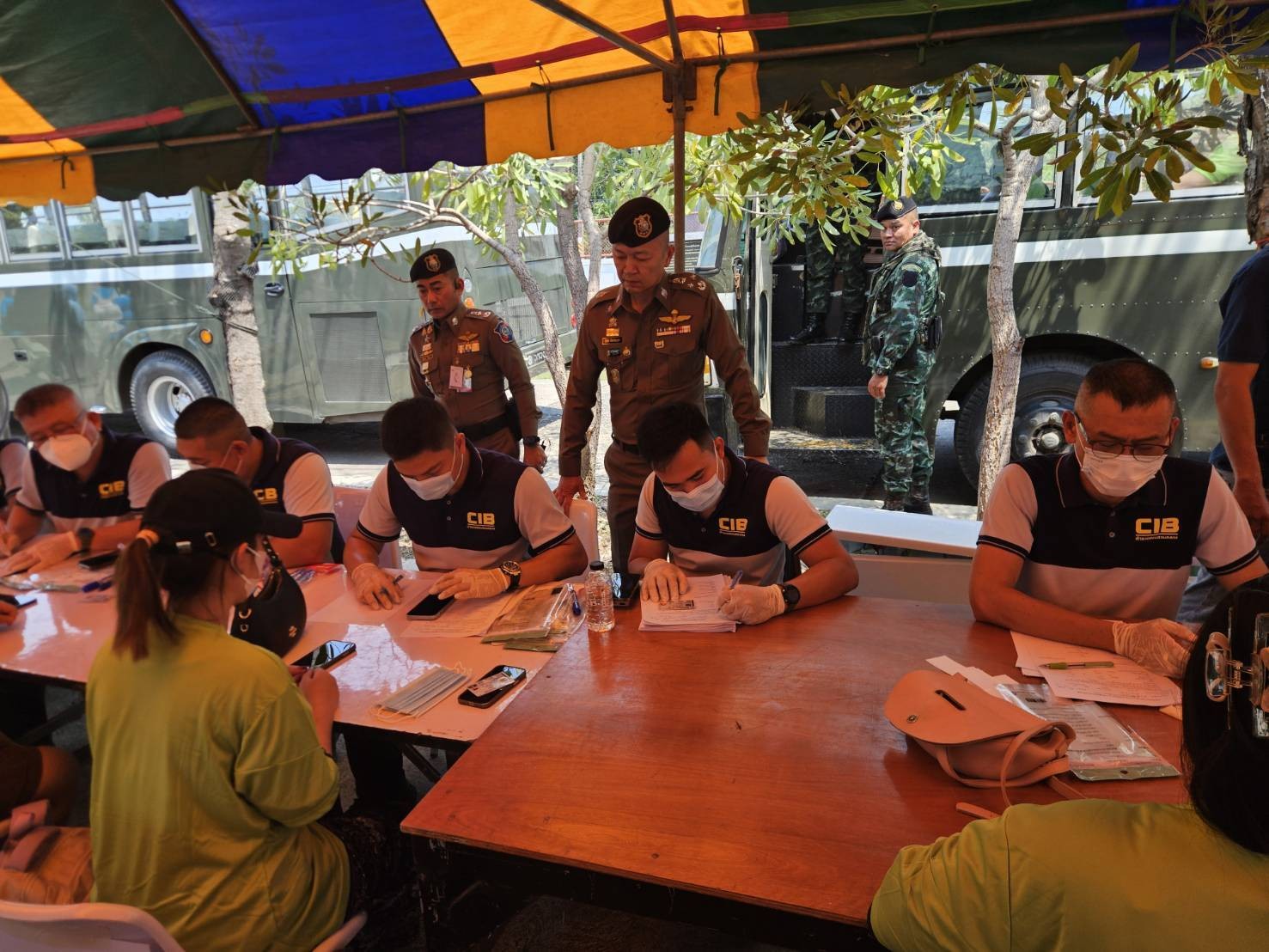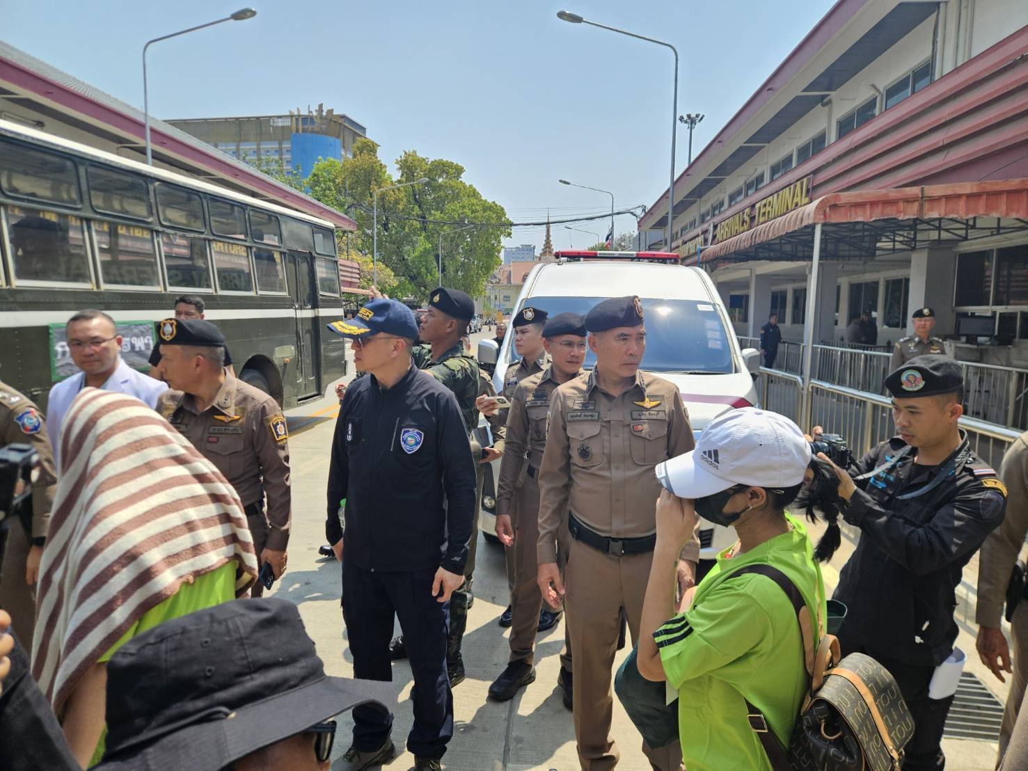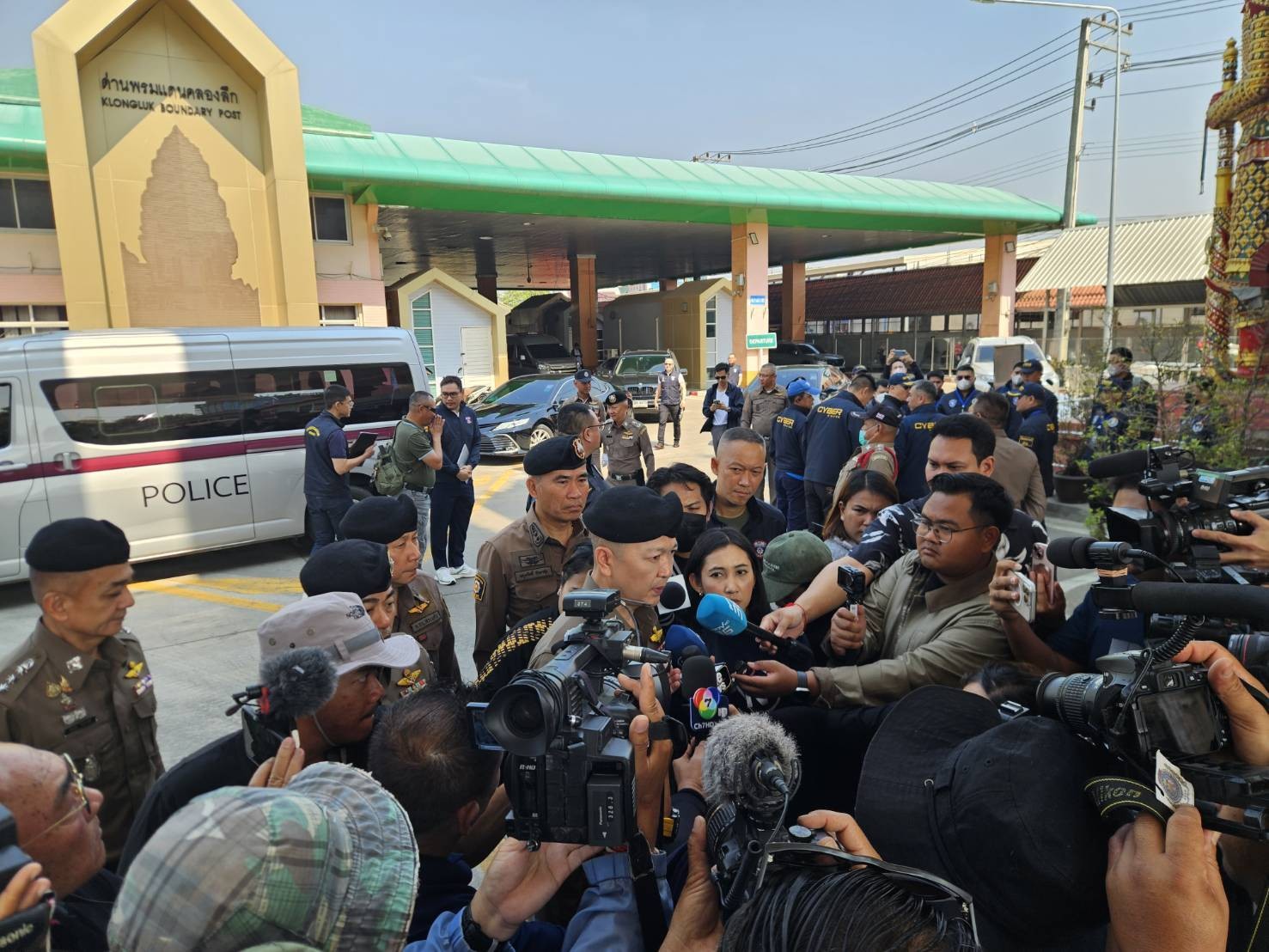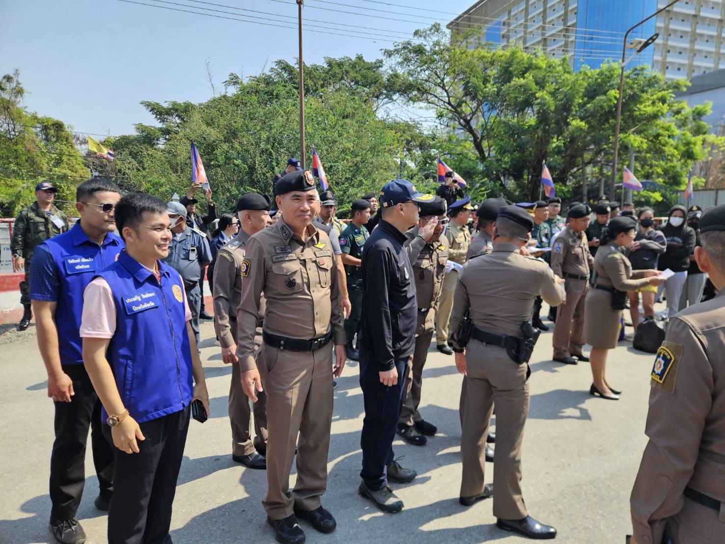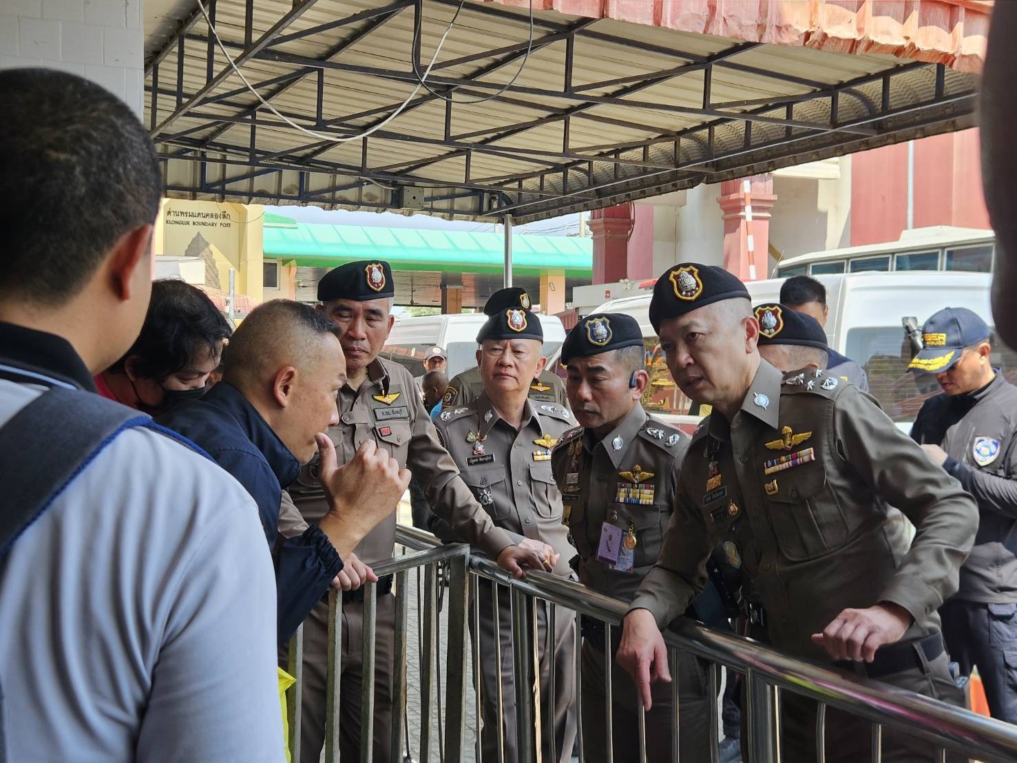 พล.ต.ต.ผดุงศักดิ์ รักษาสุข ผบก.ภ.จว.จันทบุรี ร่วมกับคณะของ พล.ต.อ.ดร.ธัชชัย ปิตะนีละบุตร พร้อมคณะ ในการสังเกตการณ์ การรับตัวคนไทยที่ถูกหลอกลวงหรือไปทำงานแก๊งคอลเซ็นเตอร์ในประเทศกัมพูชา จำนวน 119 คน ซึ่งประเทศกัมพูชาได้นำส่งกลับผ่านช่องทางด่านถาวรบ้านคลองลึก ตั้งแต่กระบวนการรับเข้า บริเวณกลางสะพานมิตรภาพ จากนั้นได้ร่วมสังเกตการณ์การดำเนินการคัดกรองตามกลไกส่งต่อระดับชาติ หรือ NRM ภายในบริเวณค่ายสุรสิงหนาท