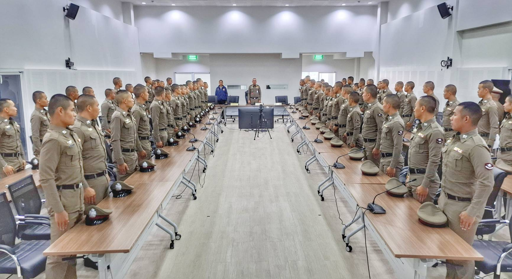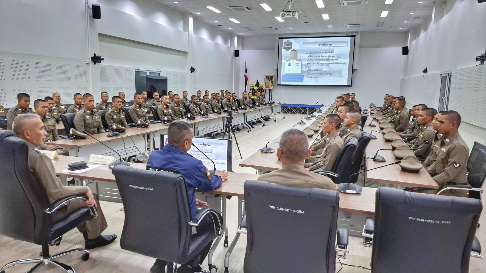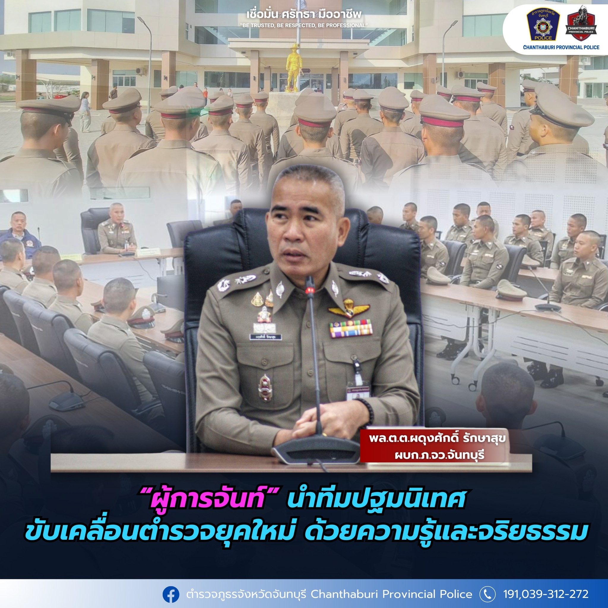 พล.ต.ต.ผดุงศักดิ์ รักษาสุข ผบก.ภ.จว.จันทบุรี, รอง ผบก.ภ.จว.จันทบุรี, ผกก.ฝอ.ภ.จว.จันทบุรี, ผกก.(สอบสวน) กลุ่มงานสอบสวน ภ.จว.จันทบุรี และเจ้าหน้าที่ที่เกี่ยวข้อง ร่วมปฐมนิเทศข้าราชการตำรวจใหม่