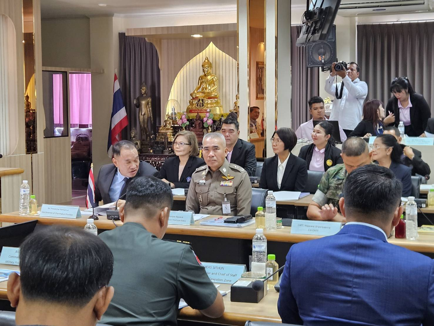 ร่วมต้อนรับ นายซก ลู ผู้ว่าราชการจังหวัดพระตะบอง ราชอาณาจักรกัมพูชา พร้อมคณะ ซึ่งได้เดินทางมาเยี่ยมเยือนจังหวัดจันทบุรี เพื่อเชื่อมความสัมพันธ์และแลกเปลี่ยนวัฒนธรรม โดยมี นายมนต์สิทธิ์ ไพศาลธนวัฒน์ ผู้ว่าราชการจังหวัดจันทบุรี เป็นหัวหน้าคณะจังหวัดจันทบุรีให้การต้อนรับคณะดังกล่าว และได้ร่วมประชุมหารือเกี่ยวกับความร่วมมือระหว่าง 2 ประเทศ ในด้านต่างๆ ทั้ง เช่น การยกระดับจุดผ่อนปรนการค้าซับตารี เป็นด่านถาวร ด้านแรงงาน ด้านท่องเที่ยว และความมั่นคง รวมถึงความร่วมมือในการปราบปรามแก๊งคอลเซนเตอร์ตามแนวชายแดนไทย-กัมพูชา เป็นต้น