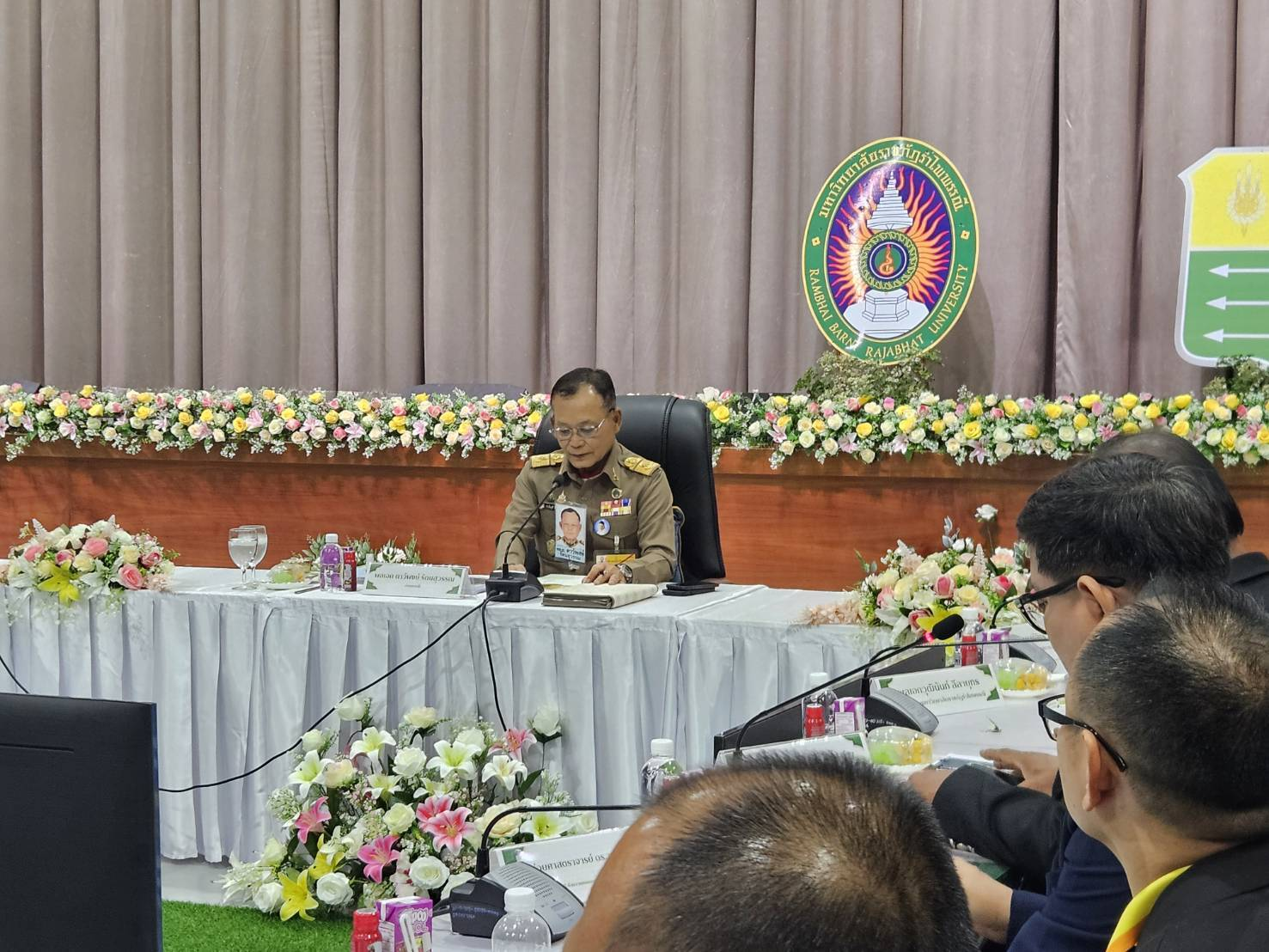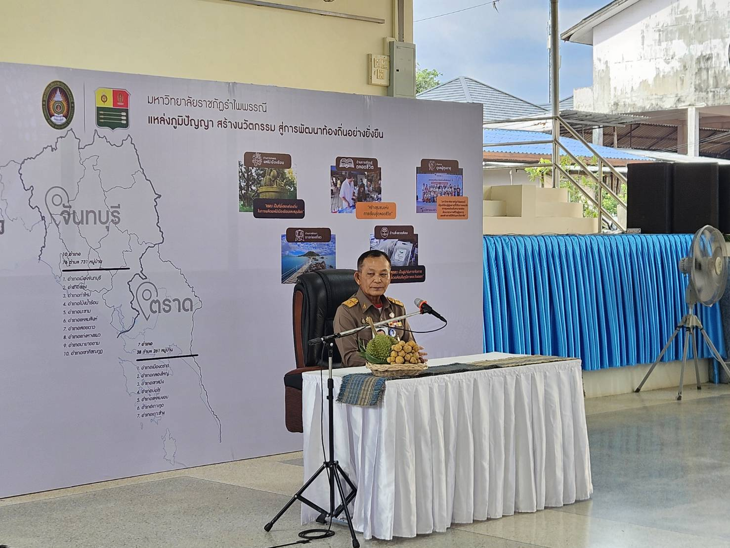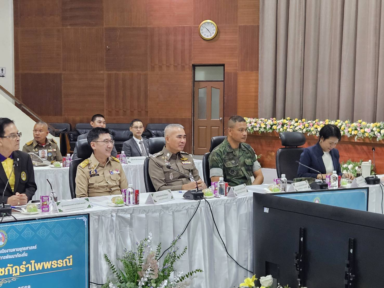 พล.ต.ต.ผดุงศักดิ์ รักษาสุข ผบก.ภ.จว.จันทบุรี, นายมนต์สิทธิ์ ไพศาลธนวัฒน์ ผู้ว่าราชการจังหวัดจันทบุรี, ผู้แทน กปช.จต., ผศ.ไวกูณฑ์ ทองอร่าม อธิการบดี มรฎ.รำไพพรรณี
