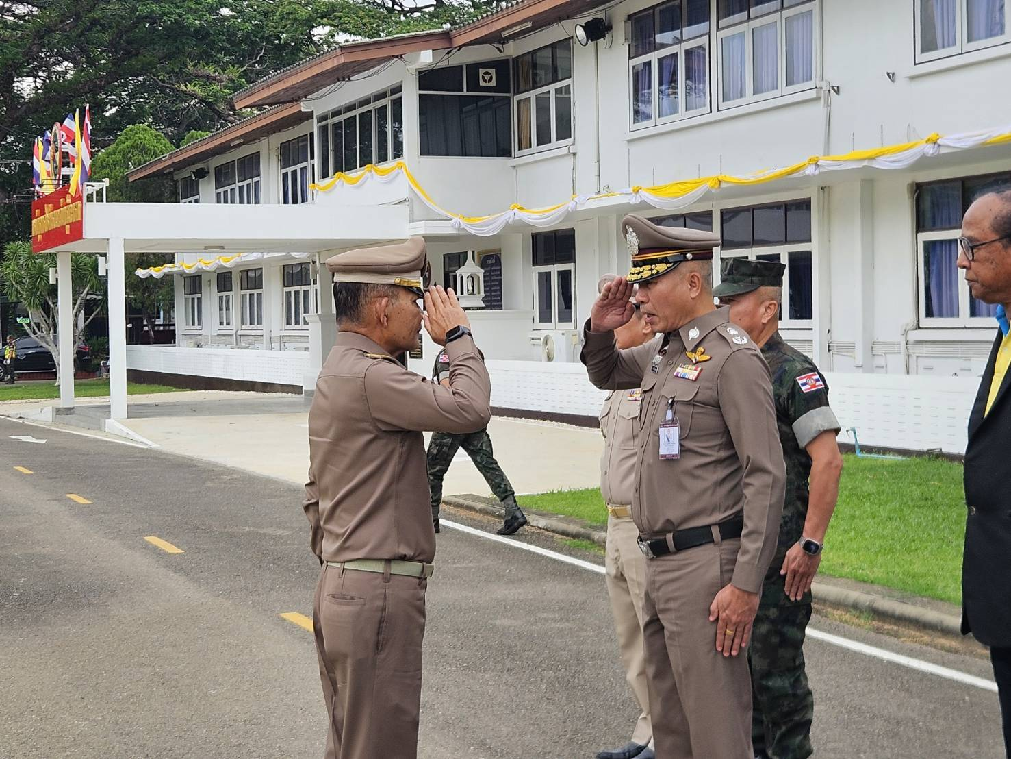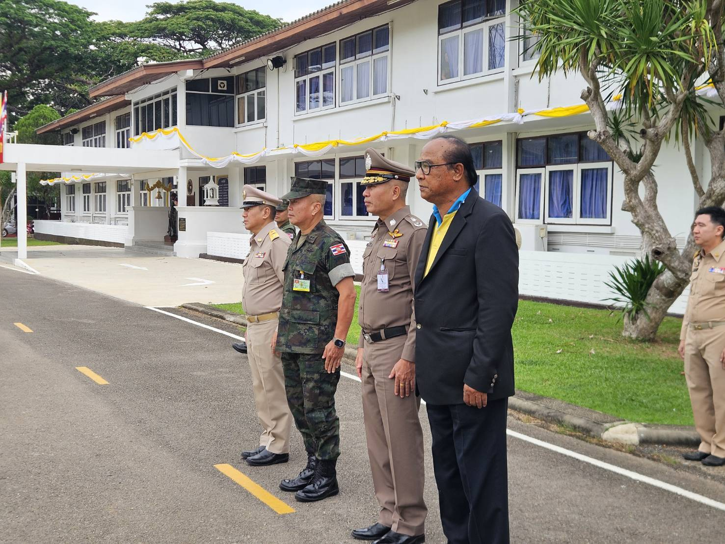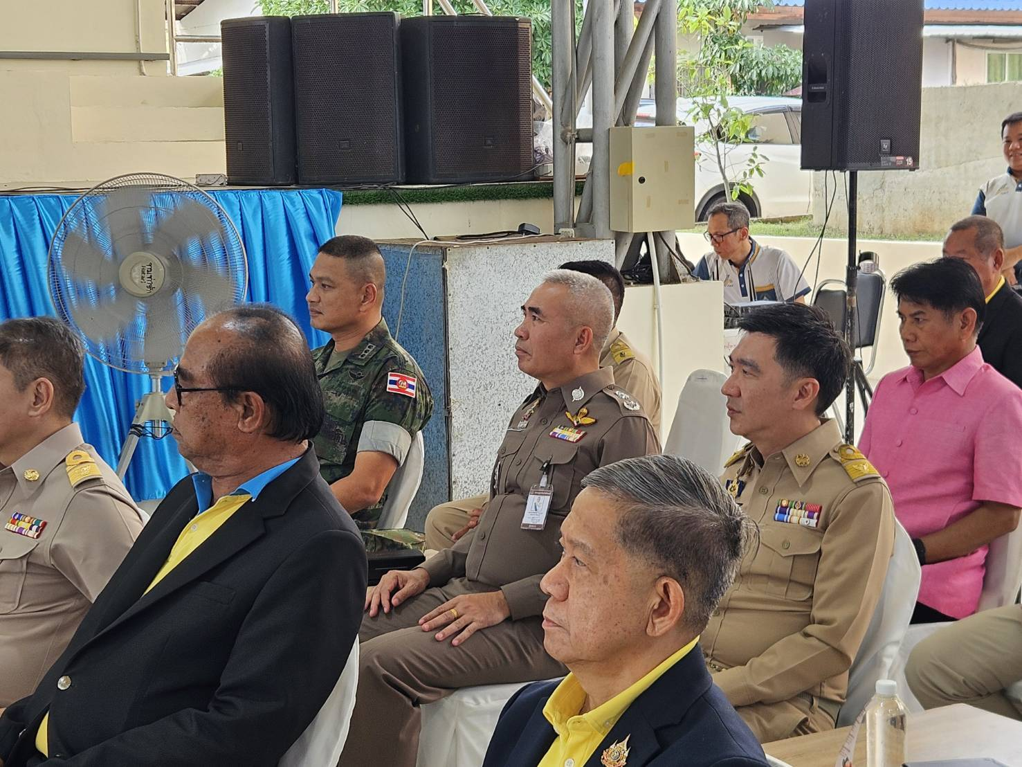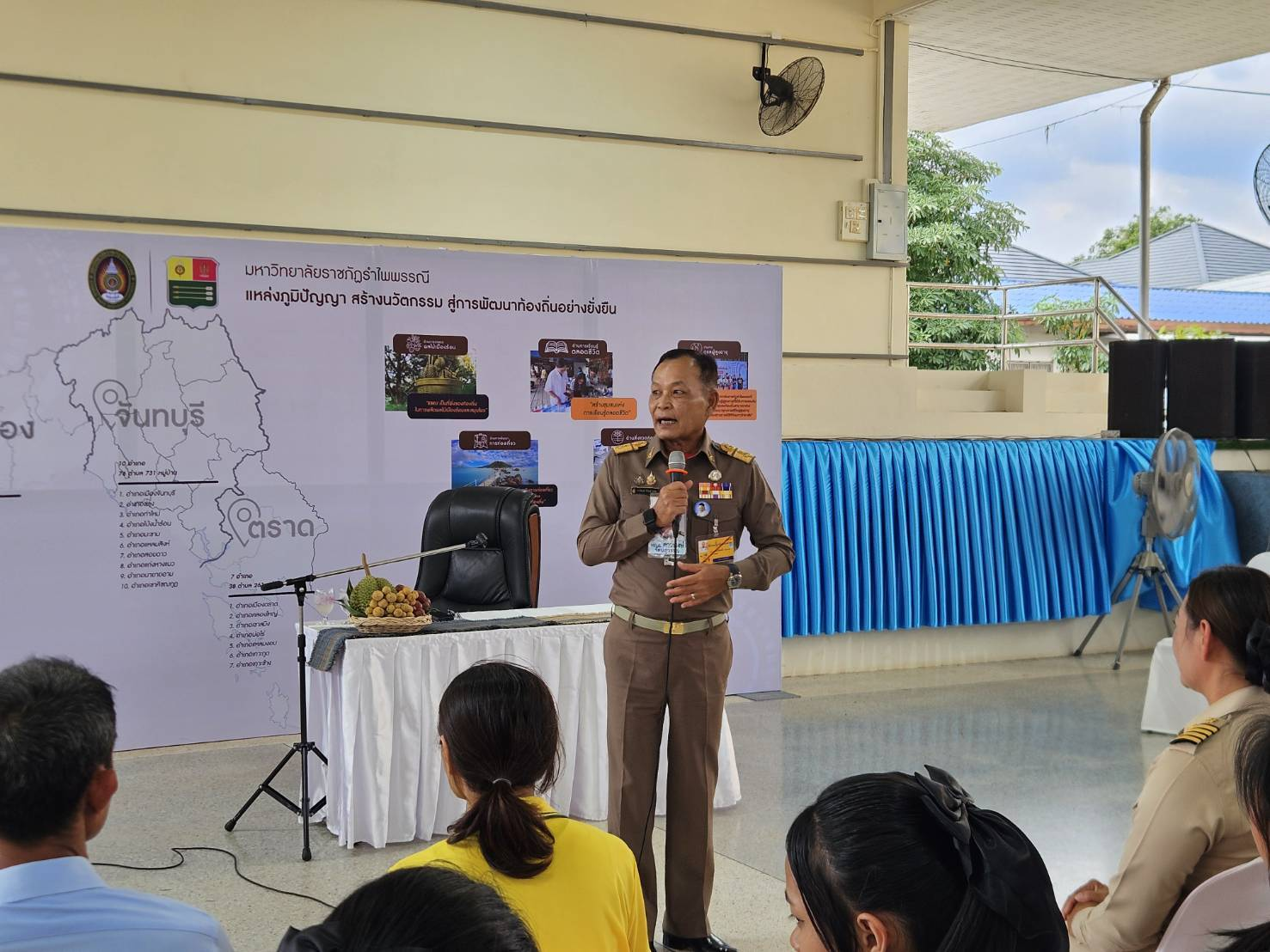 พล.ต.ต.ผดุงศักดิ์ รักษาสุข ผบก.ภ.จว.จันทบุรี, นายมนต์สิทธิ์ ไพศาลธนวัฒน์ ผู้ว่าราชการจังหวัดจันทบุรี, ผู้แทน กปช.จต., ผศ.ไวกูณฑ์ ทองอร่าม อธิการบดี มรฎ.รำไพพรรณี