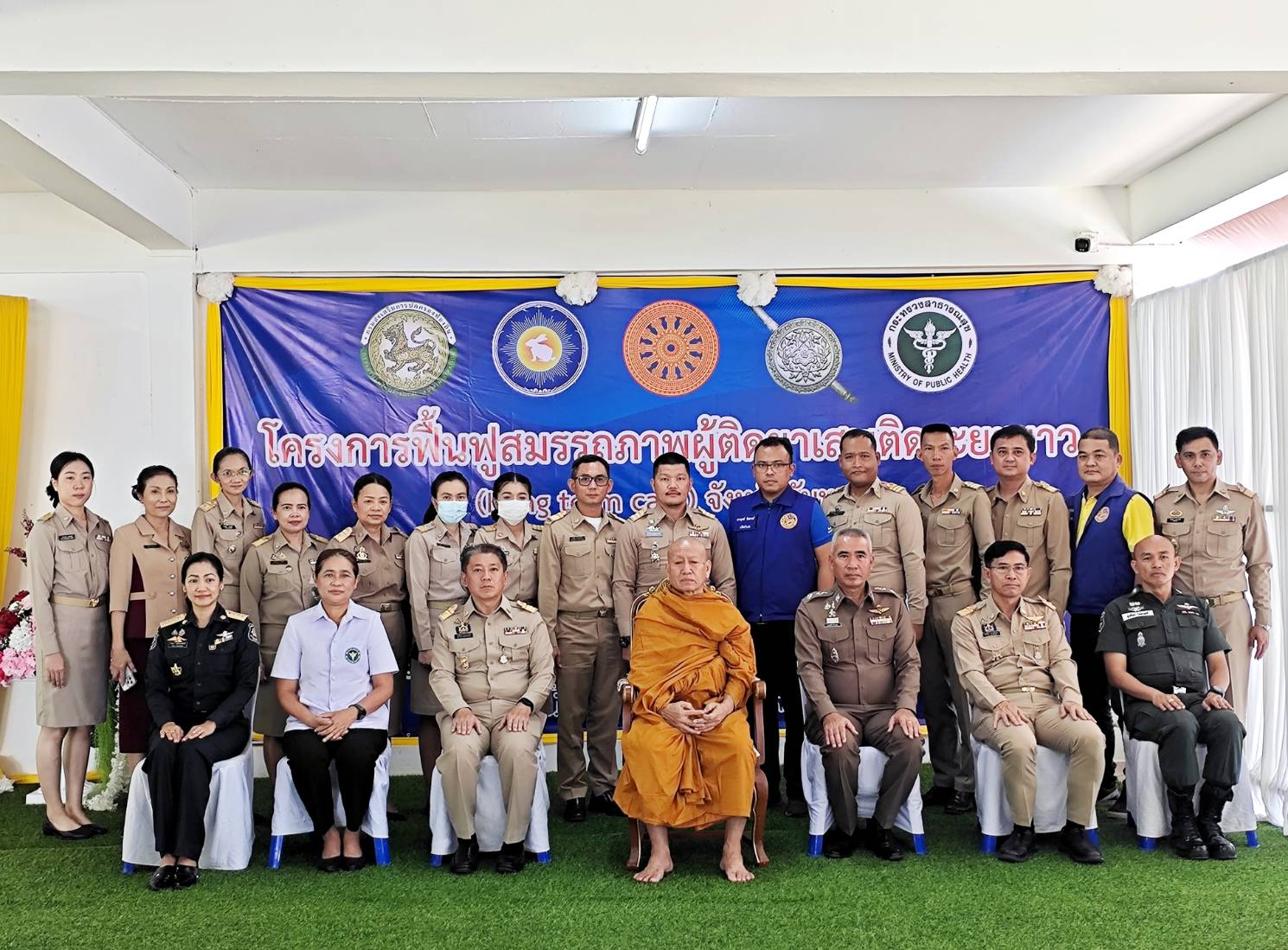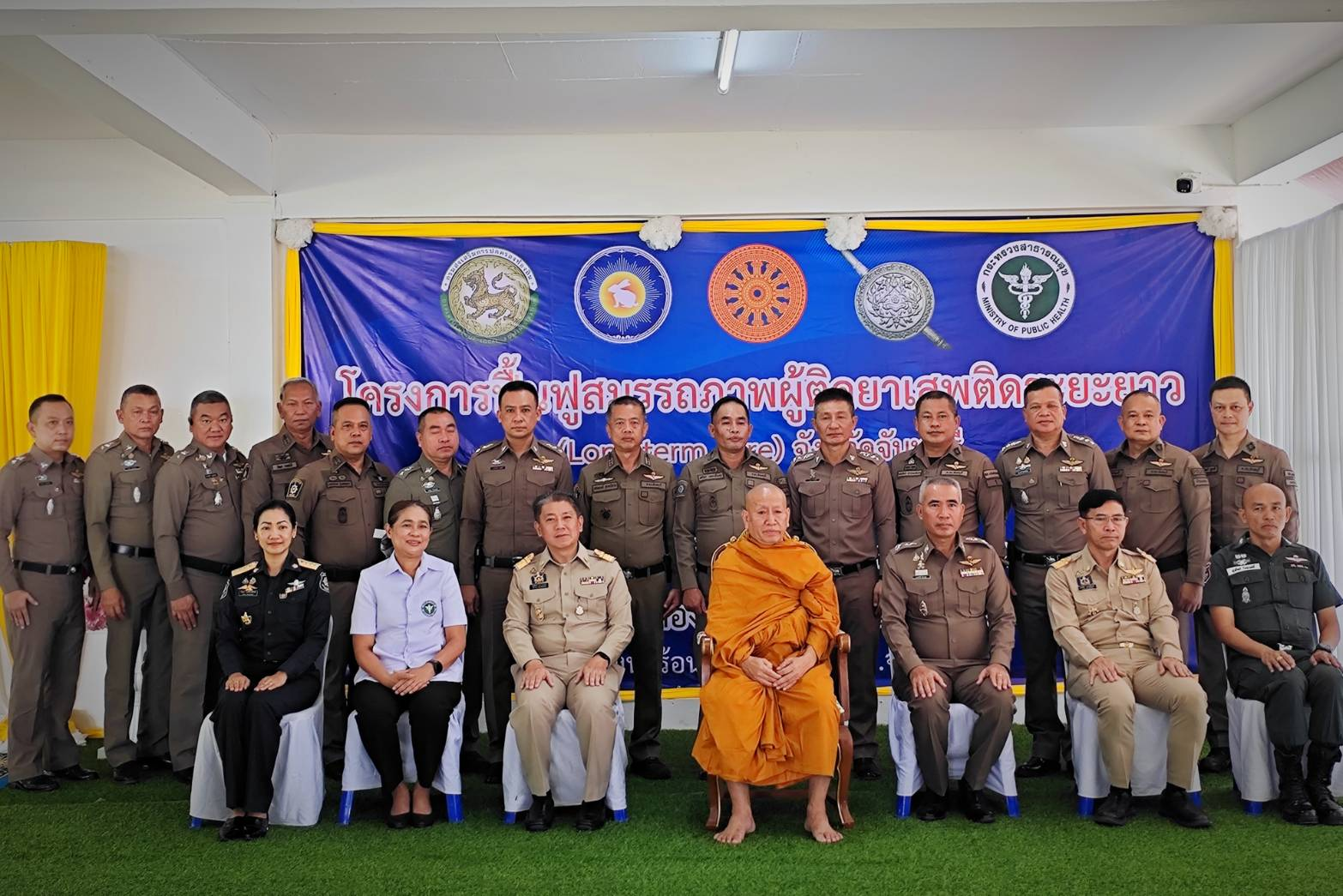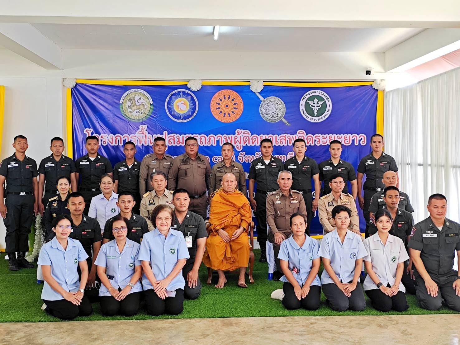 พล.ต.ต.ผดุงศักดิ์ รักษาสุข ผบก.ภ.จว.จันทบุรี, คุณทัชยา รักษาสุข ประธานแม่บ้านตำรวจภูธรจังหวัดจันทบุรี พร้อมด้วย พ.ต.อ.อรรฆพงษ์ สุนทรวิภาต รอง ผบก.ภ.จว.จันทบุรี ร่วมพิธีเปิดโครงการฟื้นฟูสมรรถภาพผู้ติดยาเสพติดระยะยาว (Long Term Care) จังหวัดจันทบุรี ประจำปีงบประมาณ 2568 (รุ่นที่ 2) โดยมี นายมนต์สิทธิ์ ไพศาลธนวัฒน์ ผู้ว่าราชการจังหวัดจันทบุรี เป็นประธานฝ่ายฆราวาส และได้รับความเมตตาจาก พระครูไพศาล บุญญวัฒน์ เจ้าคณะอำเภอโป่งน้ำร้อน เจ้าอาวาสวัดป่าเทพนิมิตร เป็นประธานฝ่ายสงฆ์